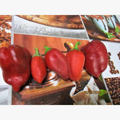 • Оригинальная, коллекционная, интересная реликвия сладкого перца из Венгрии. Срок созревания: Среднеранний (113 - 118 дня), с длительным периодом плодоношения до заморозков. Максимально растения вырастают примерно до 90 см в высоту и почти столько же в диаметре (в южных регионах, а в средней полосе — гораздо ниже). Плодоносят очень обильно. Плоды: Небольшие, сердцевидной или тупо-конической формы, длинной до 7 см., похожие на ягоды, от 2-х до 5-ти см в диаметре, которые обладают богатым сладко-терпким вкусом с легкой пряностью. Иногда его также называют «венгерский перец». Кожица блестящая, гладкая и тугая. Мякоть толстая, хрустящая и сочная. Молодые плоды — равномерно зеленые, но по мере созревания становятся ярко-красными. Они идеально подходят для еды с куста, но также хороши для маринования и консервирования. Стенка: Очень толстая (до 5-10 мм), сочная, мясистая, хрустящая. Вкус: Насыщенно сладкий, с перечным ароматом. Даже в технической спелости плоды обладают приятным вкусом, напоминающим аромат лепестков розы. Урожайность: Высокая, растения очень декоративны. Использование: Цельноплодное консервирование: Идеальны для маринования целиком. Фарширование: Отлично подходят для фарширования сыром, зеленью и чесноком.Свежее употребление: Сладкие и ароматные, хороши для еды с куста. Выращивание:Место: Солнечное, хорошо растет в теплицах, парниках и на подоконниках. Уход: Неприхотлив, хорошо переносит перепады погоды. Хранение: Хорошо хранится 1-2 недели в холодильнике, в немытом виде, в бумажном или пластиковом пакете.