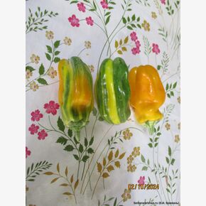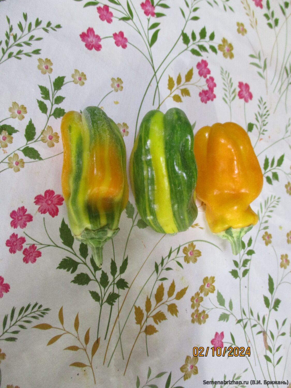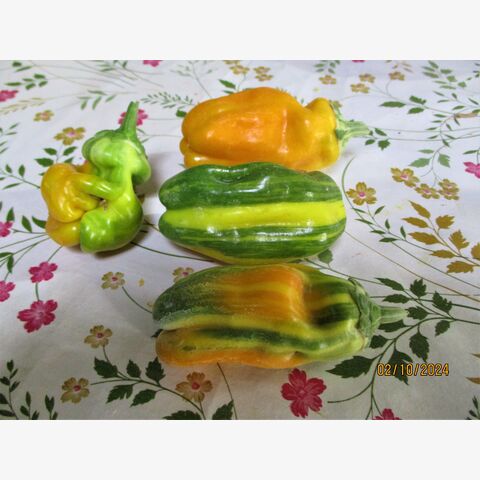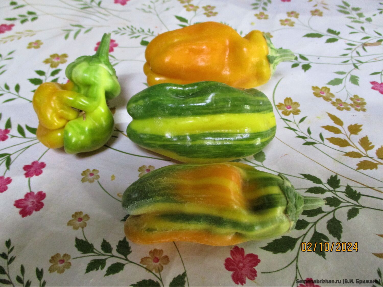 • Перец сорт Candy Cane Gold был разработан в Голландии. Сорт ультраранний. В зелёном виде плоды можно уже есть через 40 - 45 дней после высадки рассады, в созревшем виде через 60-65 дней. Этот уникальный перец нового поколения имеет необычную вариегатную пёструю листву, и плоды, которые созревают от зелёного и светло-желтого в белую полоску до золотистого в оранжевую полоску. Перец производит гладкие плоды, 6 см в длину и 3 см в ширину, призматической формы, весом 30-120гр.. Превосходный сладкий вкус, хрустящая текстура, идеально подходят для свежей еды на любой стадии зрелости. Растение высотой 40-45 см., компактное, средней мощности, для выращивания в открытом и закрытом грунте, можно выращивать в горшке на окне или балконе. Разнообразие вариегатных кустов и листвы и плодов усиливается по мере созревания растений. Это растение перца будет выделяться, радовать и удивлять всех! Идеальный, универсальный сорт для всех видов кулинарного применения с отличным сладким вкусом. Один из моих фаворитов! Этот превосходный перец достоин того, чтобы его посадить на своём участке. В пакете 20 шт. семян.