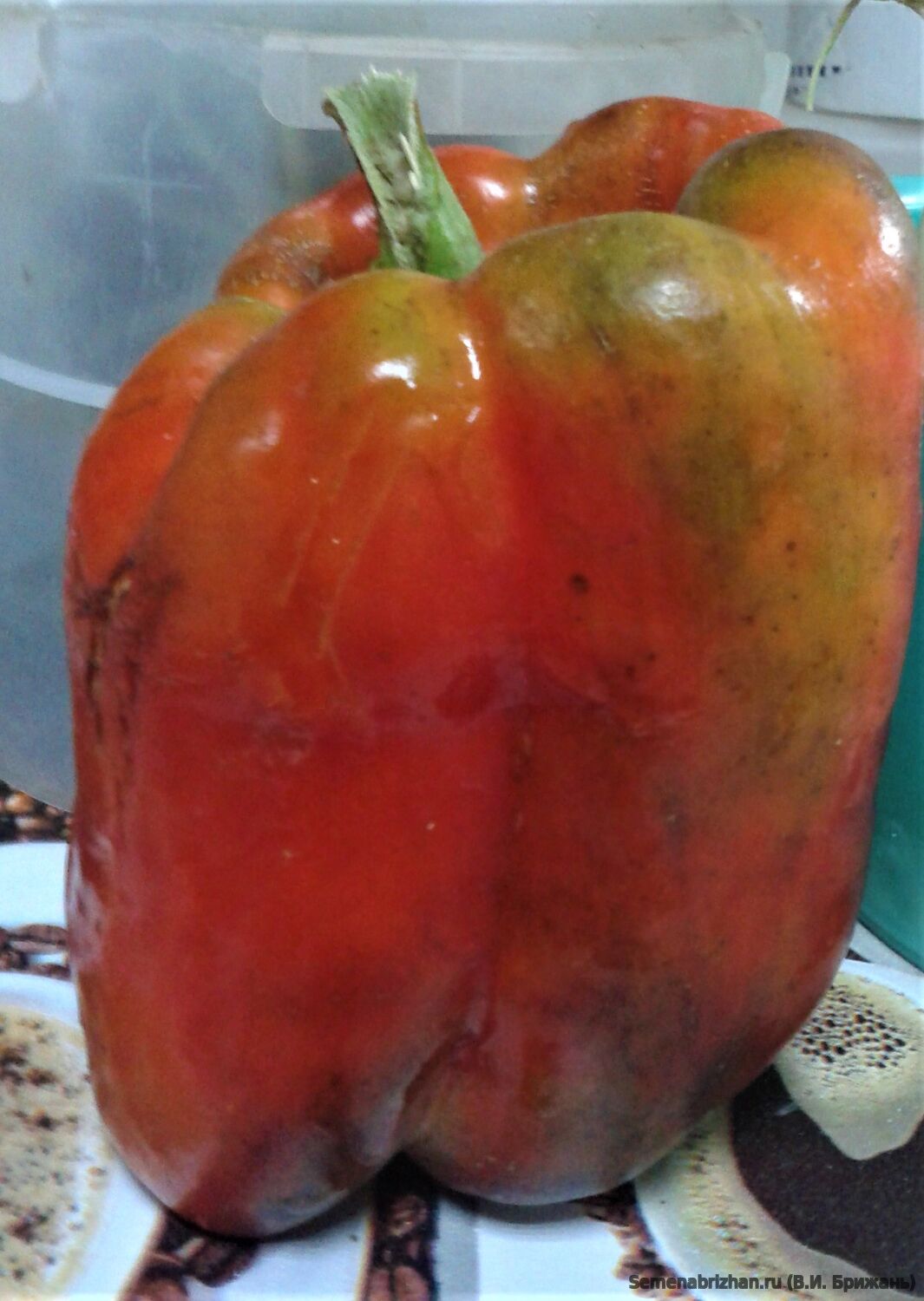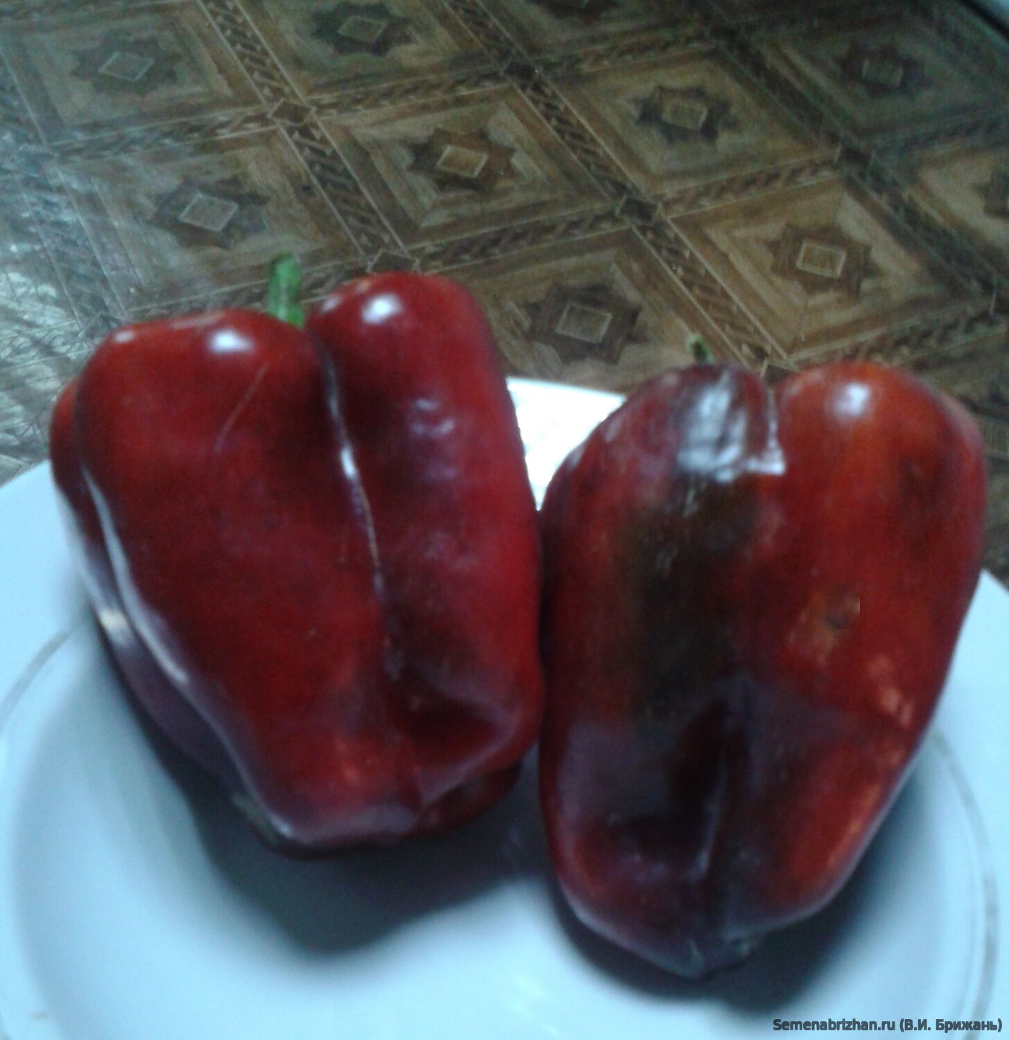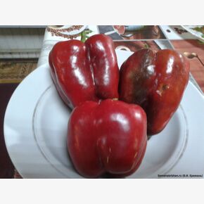 Семейная коллекционная реликвия из Бельгии. Жаростойкий, засухоустойчивый, среднеранний сорт. От всходов до созревания плодов проходит примерно 110-120 дней. Куст среднерослый, достигает высоты 50-60 см. Листья светло-зелёные, имеют яйцевидную форму. Плоды кубовидно-призматической формы, размером 20х12 см и весом около 180-280 гр. Мякоть околоплодника имеет толщину около 6-8 мм. Перцы этого сорта обладают оригинальной окраской. В фазе технической спелости они нежного тёмно-фиолетового, почти чёрного цвета, по мере созревания, плоды становятся тигрово-полосатыми, а в фазе биологической спелости приобретают ярко-красно-бордово-оранжевый цвет с пурпурными разводами и красноватым румянцем. Примечательно, что окраска плодов не однократно меняется от технической спелости к биологической. Этот сорт универсален в использовании: плоды можно употреблять в свежем виде, фаршировать, замораживать, готовить из них лечо или запекать. Плоды долго сохраняют товарный вид и могут храниться после уборки в течение длительного времени. Агротехника: Самые сладкие и вкусные перцы получают рассадным способом. Первые плоды собирают через 4 месяца с момента посева семян на рассаду. Оптимальная температура прорастания семян 25-28⁰C. Всходы появляются через 14 дней. В грунт рассаду высаживают в возрасте 55-60 дней (рост около 20 см и около 10 развитых листьев). Рассаду в теплицу высаживают в середине мая, а в открытый грунт в середине июня, после окончания весенних заморозков. Схема посадки 70-90 см х 40-50 см.