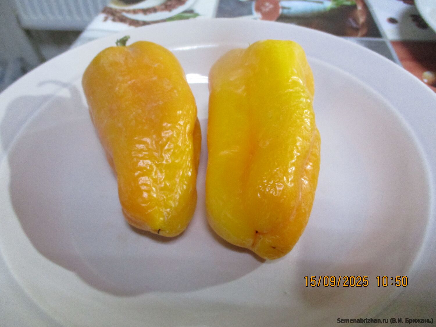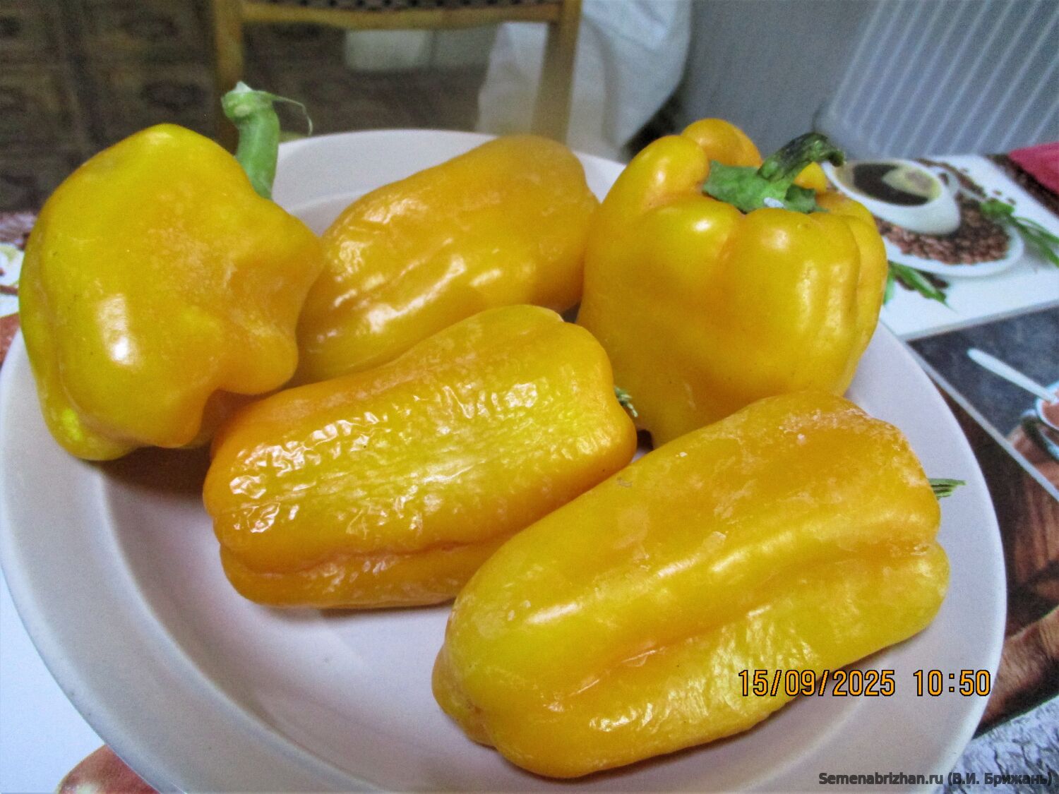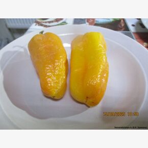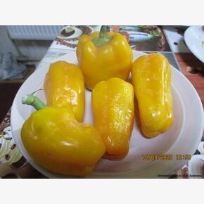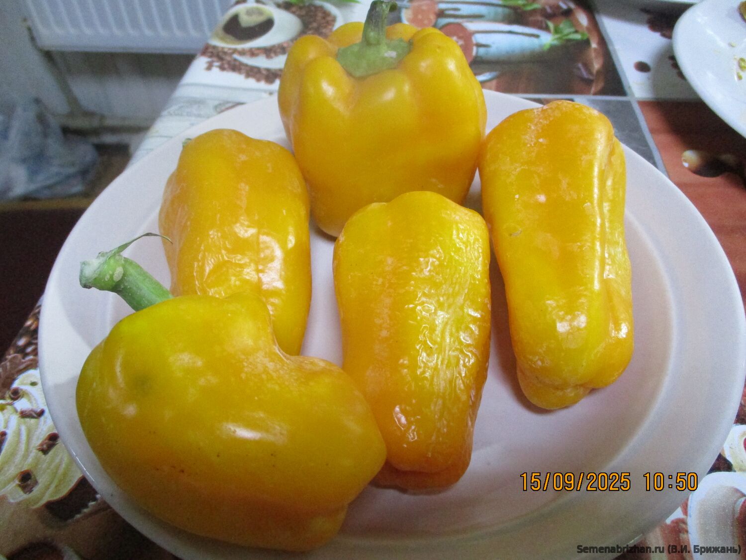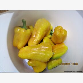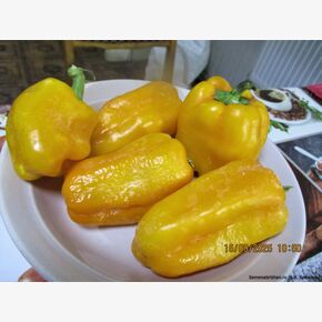 Польский коммерческий сорт сладкого перца. Среднеранний, от всходов до технической спелости 100 -115 дней. Растение компактное, высотой 60-70 см и диаметром 30-50 см, обильно плодоносит в течение сезона. Плоды имеют форму усеченной призмы размером 10-14х6-8 см; стенка сочная, мясистая, толщиной 7-8 мм. Окраска плода в технической стадии - светло-зеленая, в биологической - желто-золотистого цвета. Плоды достигают 200-250 грамм. Очень сладкий и сочный, с насыщенным цитрусовым ароматом. Вкусовые качества плодов достойны самой высокой оценки! Плоды используют в свежем виде, запекают на гриле, фаршируют, замораживают, они хороши для любых видов консервации. В культивации неприхотлив, хорошо переносит экстремально высокие температуры. Лёжкость высокая. Сорт очень урожайный — до 14 крупных плодов на растении. Хорошо устойчив к тобамовирусам и вирусу бронзовой пятнистости. Рекомендуется для выращивания в открытом грунте и пленочных теплицах. В пакете 20 шт. семян.