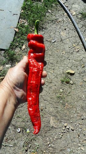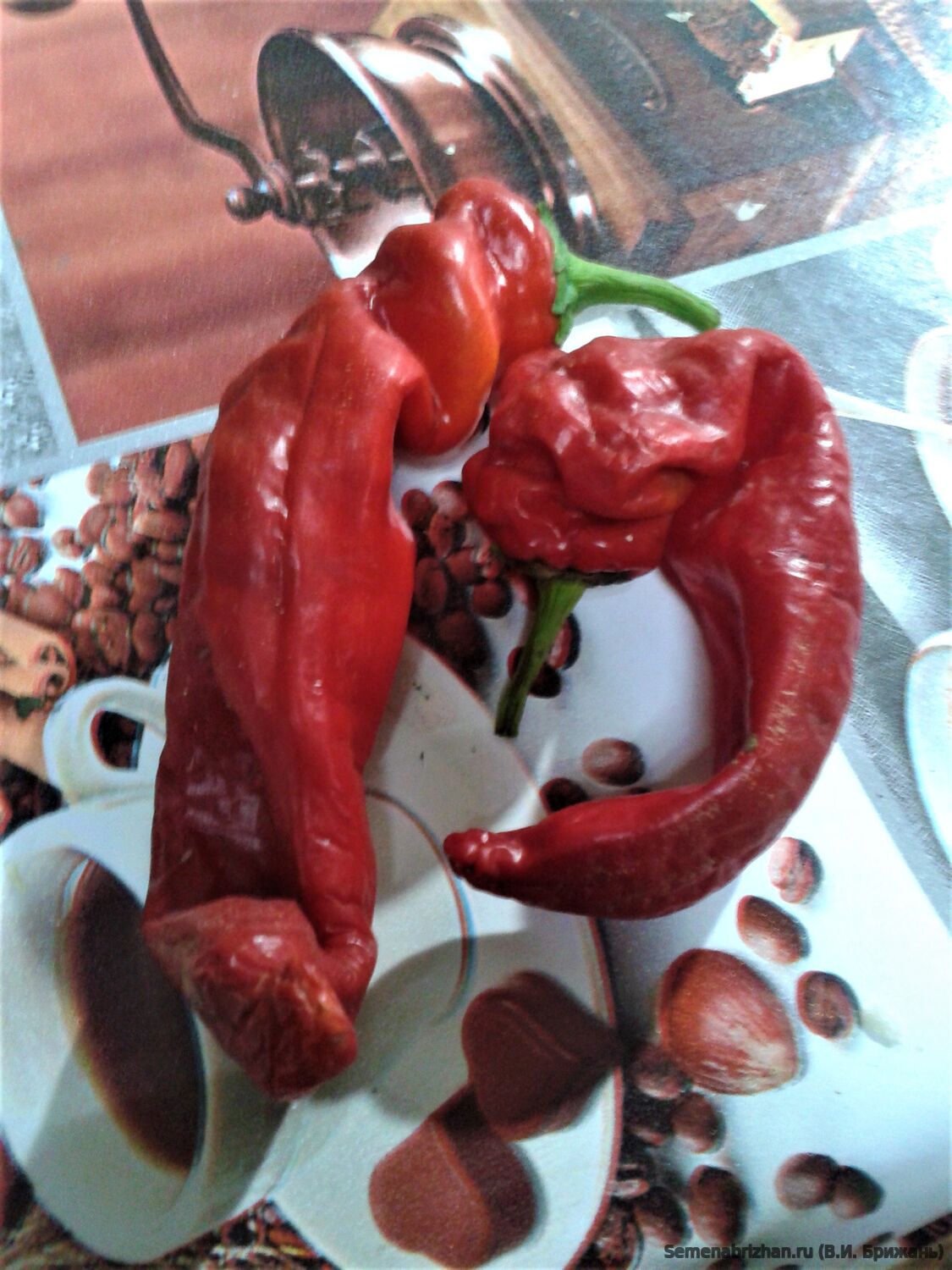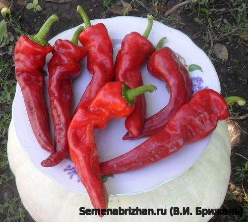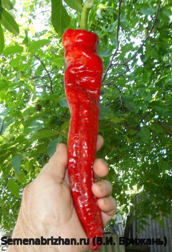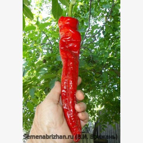 • «Georgian Nose» (Грузинский нос) — это среднеспелый, коллекционный, высокоурожайный сорт сладкого перца любительской селекции, с мощными, раскидистыми кустами до 1-1,5 м, образующий длинные (до 25-30 см), конусовидные, складчатые плоды, которые меняют цвет от зеленого к ярко-красному; мякоть сочная, ароматная, со стенками 4-5 мм, идеальна для свежего употребления, консервации и маринадов, ценится за интересный вкус и высокую урожайность.Основные характеристики: Тип: Сладкий перец. Срок созревания: Среднеспелый (112-120 дней). Куст: Мощный, раскидистый, высотой 90-150 см. Растение генеративное, с сильной энергией, короткими междоузлиями и длительным периодом плодоношения. Плоды: Форма: Удлиненно-конусовидные, с загнутым или острым кончиком, с неровностями и складками. Размер: Длина до 25-30 см, ширина 4-5 см.Вес: 100-180 г. Стенка: Толщиной 4-5 мм, сочная, нежная. Цвет: Техническая спелость — зеленый (иногда фиолетовый), биологическая — огненно-красный. Вкус: Сладкий, ароматный, с легким перечным ароматом, отличный. Урожайность: Высокая. Использование: Ароматные перцы добавляют в салаты и супы, маринуют, замораживают, тушат и консервируют. Условия выращивания: Для открытого грунта и теплиц, неприхотлив. Преимущества: Экзотический вид плодов. Высокая урожайность. Отличные вкусовые качества. Универсальность применения в кулинарии. Рекомендуется для выращивания в теплицах и открытом грунте. Сорт устойчив к вирусу табачной мозаики. Характеризуется высоким содержанием сахаров и витаминов. Сорт урожайный, устойчивый к болезням, низким температурам и малой освещенности !!! В пакете 5 шт. семян.