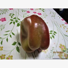 Происхождение сорта: Польша. Раннеспелый крупноплодный сорт. Срок созревания: 99-120 дней. Растение компактное, средней высоты, сильнооблиственное. Плод крупный, массой 115-200 гр., трапецевидный или овально-конусовидной формы с округлой вершиной, длиной 10-14 см., гладкий, слаборебристый, достаточно толстая, плотная, сочная стенка (8-9 мм), вкус замечательный, в технической спелости тёмно-лилово-зелёный, в биологической - бордово-красный. Положение плодов на растении пониклое. Мякоть мясистая, нежная, отличного вкуса, аромат сильный. Мякоть очень вкусная и сладкая, чрезвычайно сочная. Подходит для лечо, фаршировки, маринования, консервации, а также любых других переработанных и свежих блюд. Незначительно поражается вершинной гнилью плодов, устойчив к вирусу табачной мозаики. Ценность сорта - высокое качество плодов. В пакете 20 шт. семян.