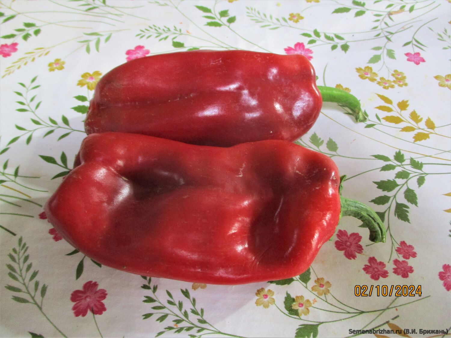 Семейная коллекционная реликвия из США, штат Северная Дакота. Недалеко от города Фарго живет фермер и много лет выращивает этот сорт. Климат в этом штате специфический, довольно таки непредсказуемый, но урожай фермер получает всегда отменный. Мы попробовали и можем подтвердить — офигенный сорт! ХАРАКТЕРИСТИКА СОРТА: В теплице примерно 80 см, в ОГ примерно 60 см. Среднеспелый, стремящийся к средне-раннему (в теплице) -100-115 дней от всходов, с длительным плодоношением, до заморозков. Очень красивы в плодоношении. Плоды кубовидно-призмовидные, толстостенные, массой 200-300 гр., длина плодов 17-22 см., в технической спелости светло-лиловато-зеленого, в биологической – насыщенно красного цвета, вкусные и ароматные, мясистые - толщина стенки 8-10 мм. Вкус сладко-фруктовый, с легкой ягодной ноткой. Плоды с сочной, ароматной мякотью, идеальны для фарширования, употребления в свежем виде и переработки. Урожайность бешеная! Стрессоустойчивый, не капризный, не болючий. Лёжкость отличная. При длительном хранении не теряет упругости и вкусовых качеств. В пакете 5 шт. семян.
