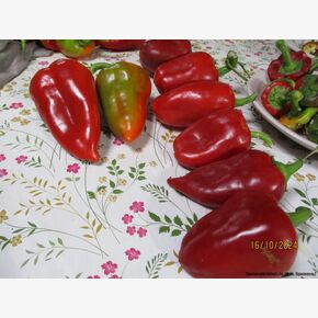 Перец «Большое сердце» — это высокорослый (до 1 м) сладкий сорт с крупными (около 300 г), сочными плодами удлиненно-конической или ширококонусовидной формы, темно-красного цвета, мясистой стенкой до 1 см, универсальным применением, прекрасный в свежем виде, для фарширования и заготовок. Основные характеристики сорта "Большое сердце" Куст: Высокий, до 1 метра, мощный. Плоды: Положение плодов на растении пониклое. Форма: Удлиненно-коническая, ширококонусовидная, похожая на сердце. Цвет: В биологической спелости — темно-красный. Мякоть мясистая, нежная, отличного вкуса, аромат сильный. Мякоть очень вкусная и сладкая, чрезвычайно сочная. Вес: Крупные, около 300 г. Стенка: Толстая, очень сочная. Вкус: Сладкий, мясистый. Использование: Универсальное – свежее потребление, салаты, для лечо, фарширование, консервирование, а также любых других переработанных и свежих блюд. Особенности: Высокая урожайность, эффектный вид плодов, отличный вкус. Незначительно поражается вершинной гнилью плодов, устойчив к вирусу табачной мозаики. Ценность сорта - высокое качество плодов. В пакете 20 шт. семян.