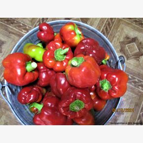 Великолепная коллекционная реликвия из Китая. Сорт отличающийся медово-сладким вкусом. Раннеспелый низкорослый сорт сладкого перца. Куст мощный, пышный. Срок созревания: 90-100 дней. Высота растения: 50 см. Куст компактный, можно выращивать в горшке. Плоды этого перца небольшие, форма плода: томатовидно-конусовидно-кубовидная, с выраженными долями, мясистые, сочные, массой до 130 г, по мере созревания окраска плодов меняется от зеленой к ярко-красной. Используются в свежем виде, консервировании и для фаршировки. Обладают повышенной лежкостью и транспортабельностью. Предпочитает солнечные участки с легкими плодородными нейтральными почвами. Можно выращивать после моркови, капусты, свеклы, бобовых (кроме фасоли) и тыквенных культур. Перец нельзя размещать рядом с огурцом. Выращивается рассадным способом. Для получения рассады семена высевают в феврале в посевные ящики с почвенной смесью. Глубина заделки не более 1 см. Ящики, накрытые пленкой (стеклом), помещают в теплое место. Оптимальная температура для прорастания семян 23-25°С. В открытый грунт высаживают в начале июня. Посадочный интервал 40х40 см. Предпочитает нечастый обильный полив теплой водой. Хорошо отзывается на азотные подкормки. В пакете 5 шт. семян.