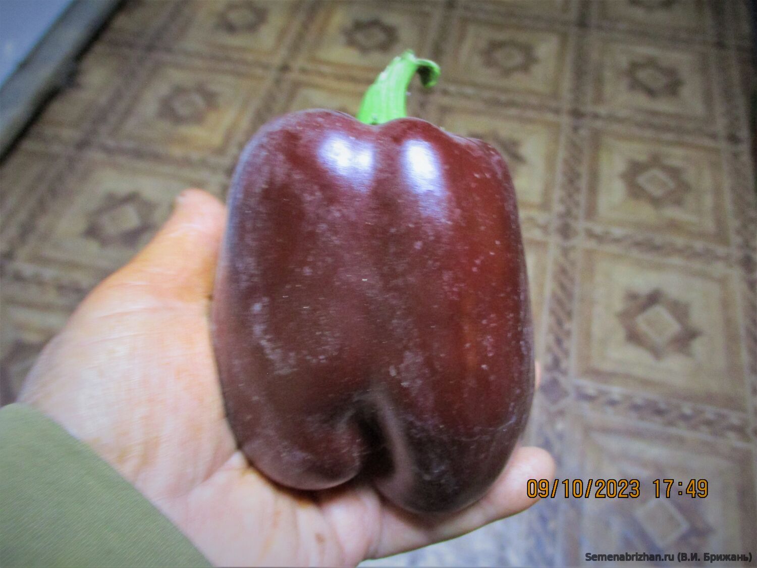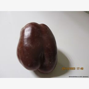 Характеристики: Куст: Полураскидистый, высотой 50-70 см, крепкий, требует подвязки. Плоды:Форма: Вытянуто-кубовидная. Размер: Длиной до 12 см, диаметр — 5–8 см., блочные, разделены на 2-3 доли. Стенка: Толстая, сочная (1-1,1 см), массой 180-180 г. Цвет: В технической спелости зеленый, в биологической – шоколадно-коричневый. Вкус: Очень сладкий, с насыщенным вкусом. Урожайность: Высокая, до 3,5-4 кг с куста. Устойчивость: К вирусу табачной мозаики и стрессам. Использование: Идеален для салатов, закусок, запекания, жарки, фарширования, маринования и консервирования.Особенности сорта: Универсальный: Подходит для открытого грунта, теплиц, а также контейнерного выращивания. Красивый: Оригинальная окраска плодов делает его декоративным. Устойчив к перепадам температур, болезням. Урожайность высокая. В пакете 5 шт. семян.