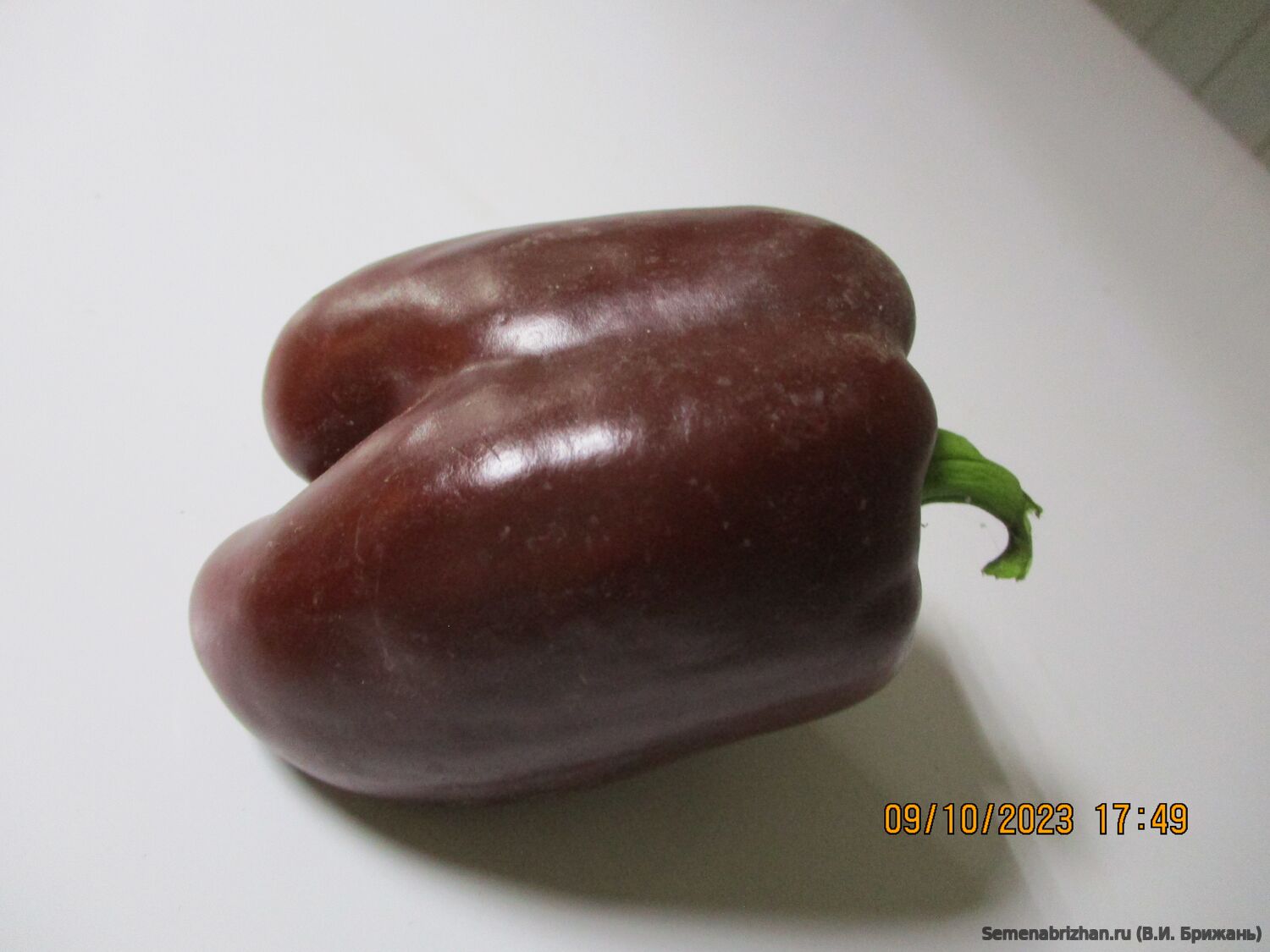 Коллекционный удивительный по красоте перец родом из США. Скороспелый вид, созревает через 105–115 суток. Подходит для возделывания в регионах с разным климатом. Овощ высаживают в тепличных и неукрывных грядках. Аккуратные кусты отличаются небольшой длиной побегов (до 50–60 см). Листья средние по величине, тёмно-зелёного цвета, характеризуются слабой морщинистостью. Для перца характерен детерминантный рост, умеренная ветвистость, одновременно завязывают 6-8 плодов. Плоды оригинальные кубовидные, гладкие, глянцевые, с очень привлекательной шоколадно--коричневой окраской в биологической спелости, массой 80-180 г, толстостенные (9-10 мм), которые имеют сладкий, насыщенный вкус, сочную мякоть и универсальны для свежего потребления, консервирования и фаршировки. Вкусовые качества отличные. Сорт отличается хорошей лежкостью и транспортабельностью плодов, а также устойчивостью к болезням. Используется для потребления в свежем виде, не заменим для домашней кулинарии и консервирования. Хорошо подходят для свежего употребления, запекания на гриле. Отлично подходит для жарки. И для пиццы. И для бутербродов. И в консервированном виде тоже изумительный. А еще их фаршируют.
