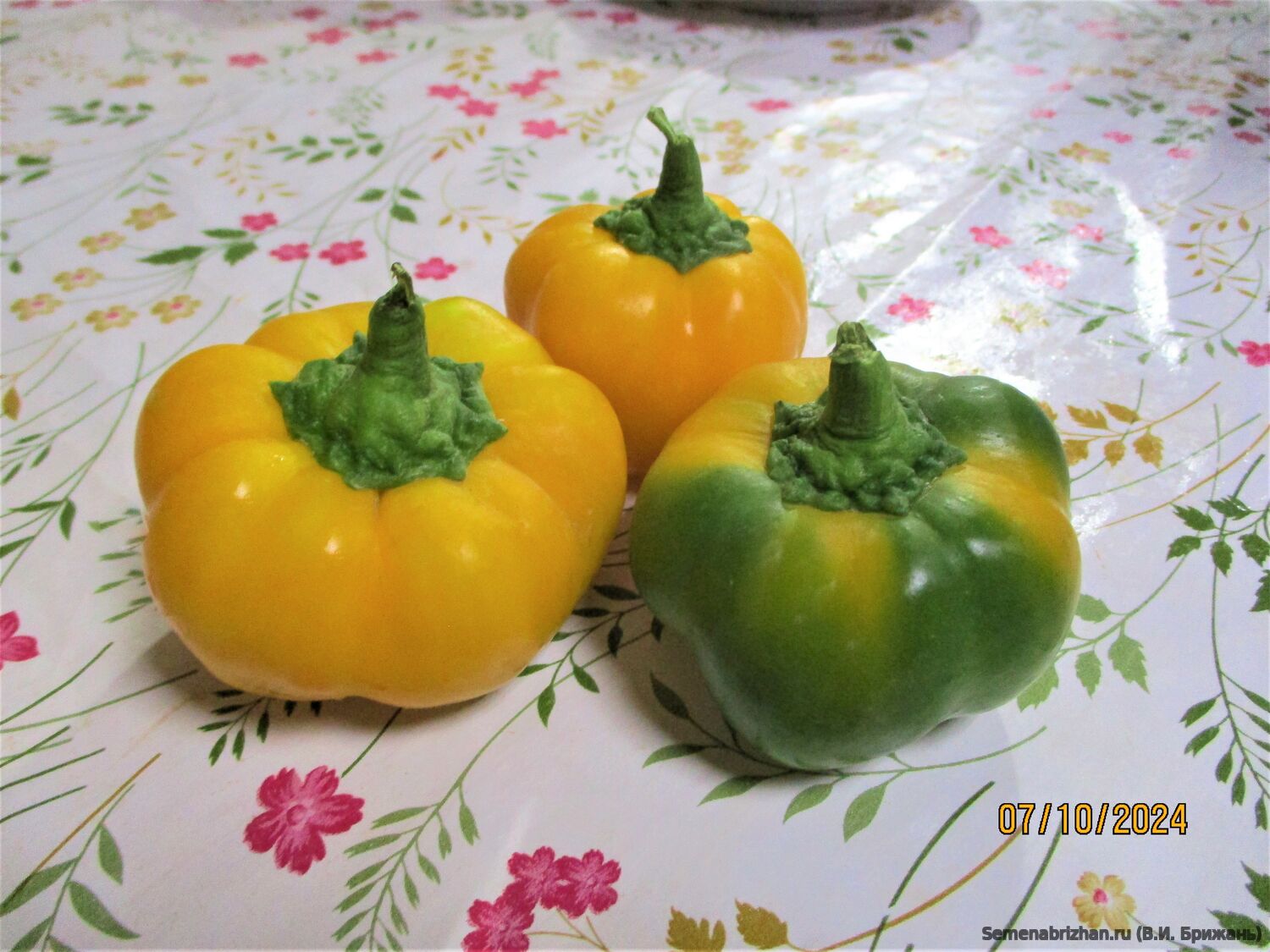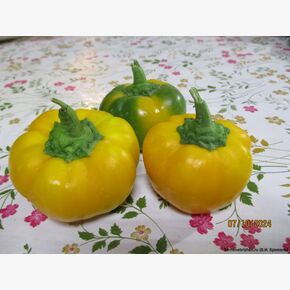 • Коллекционная реликвия из Италии. Среднеспелый, высокоурожайный сорт с привлекательными желтыми томатовидными плодами, которые созревают за 90-95 дней. Растения штамбовые, до 110 см, плоды плоскоокруглые, мясистые (стенки 6-8 мм), сладкие, массой 90-100 г. Плоды с очень сильным перечным ароматом и повышенным содержанием аскорбиновой кислоты. Перец очень вкусный и сладкий. К съёму бывает готов в тот момент, когда плоды начинают глянцевито поблёскивать. Пригодны для употребления свежими, заморозки либо консервации. Плоды едят свежими, фаршируют, готовят лечо. Идеален для салатов, маринования и консервирования, отличается хорошей лежкостью. Характеристики сорта:Тип: Сорт, среднеспелый. Сроки созревания: 90-95 дней от всходов до технической спелости. Растение: Штамбовое, густооблиственное, высотой 90-110 см, не всегда требует подвязки, адаптирован к перепадам температур. Плоды: Томатовидные, плоскоокруглые, слаборебристые, при технической спелости они обретают насыщенный зеленый оттенок, а после полного созревания — выраженный ярко-желтый. Мякоть: Сочная, сладкая, толстостенная: толщина стенки составляет до 6-9 мм. Масса: 90-100 г. Урожайность: Высокая. Использование: Свежий вид, салаты, маринование, консервирование, лечо, едят свежими, фаршируют, замораживают. Условия выращивания: Открытый грунт, пленочные укрытия, парники. Преимущества: Привлекательные, вкусные плоды. Отличная транспортабельность и лежкость. Универсальность применения. Неприхотливость, холодо- и жаростойкость.Сорт очень урожайный и неприхотливый.  В пакете 5 шт. семян.