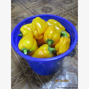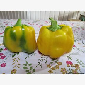 • Происхождение: Коллекционный сорт, семейная реликвия, изначально завезенная с острова Майорка, Испания. Это крупноплодная семейная реликвия из Испании (остров Майорка), известная своими огромными размерами и отличным вкусом. Этот сорт ценится за высокую урожайность и внушительные размеры плодов, что делает его популярным выбором для коллекционеров и огородников, ищущих крупные и мясистые перцы. Основные характеристики сорта Re Del Miele: Срок созревания: Среднеспелый (105-110 дней). Тип растения: Мощное, хорошо облиственное, может достигать высоты 80–150 см. Размер плодов: Плоды имеют кубовидную форму, длина плодов — 15–16 см, — до 30 см.,диаметр — 9–12 см., разделены на 4-6 ребра и имеют толщину стенок до 13 мм. Очень крупные, одни из самых больших среди сортов сладкого перца. Вес плодов: Средняя масса составляет 250–300 граммов, но может достигать и 500 граммов, одновременно завязывают 6-8 плодов. Мякоть очень сочная, хрустящая, сладкая и ароматная. В стадии технической спелости плод зелёно-кремовый,  в биологической спелости становится ярко-жёлтым, на любой стадии обладает сильным ароматом. Сорт урожайный, устойчивый к болезням, низким температурам и малой освещенности. Плоды используют в свежем виде, запекают на гриле, фаршируют, замораживают, они хороши для любых видов консервации. Устойчив к перепадам температур, болезням. Урожайность высокая. В пакете 5 шт. семян.