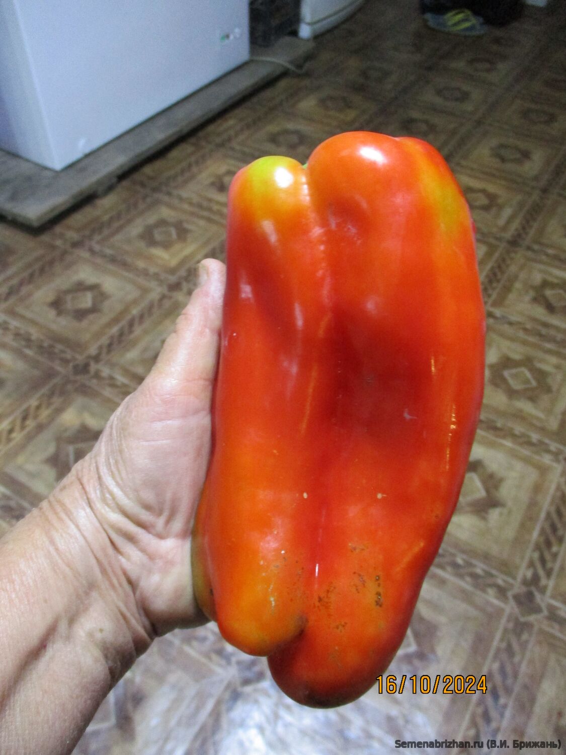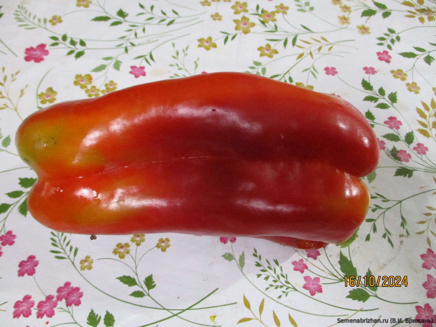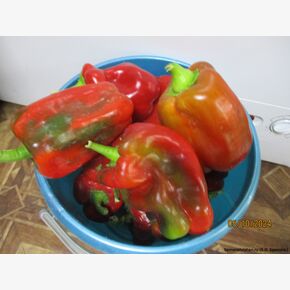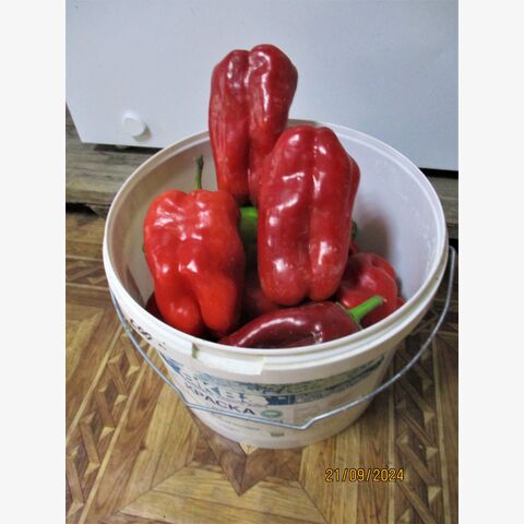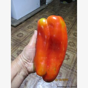 • Коллекционный, высокоурожайный, среднеранний (110-125 дней ), крупноплодный сорт  любительской селекции из Болгарии. Растение мощное, высотой до 70 см, полураскидистое. Плоды цилиндрической формы, размером 25х12, массой до 800 гр, в среднем 400-550 гр, мясистые, сочные, сладкие, с повышенным содержанием витаминов и каротина, в т. сп. – зелёные, в биол. сп. – огненно - красные. Мякоть хрустящая, плотная, сладкая. Сами плоды отличаются сбалансированным сладким вкусом, сочностью и хрусткостью мякоти, толщина которой составляет около 10 – 12 мм. Их форма характеризуется как цилиндрическая удлиненная, слегка изогнутая. По своим параметрам перец достигает 20 – 25 см в длину. Одного перца хватит на чашку салата. Сладкие, крепкие, сочные перцы можно употреблять сырыми, жареными, приготовленными на пару, обжаренными в ломтиках и подаваемыми с крупой, рисом, пастой и мясом. Сорт относится к категории среднеранних растений и больше подходит для выращивания в защищенных теплицах. А на юге в открытом грунте. Сорт отличается хорошей завязываемостью в стрессовых условиях, причем устойчивость проявляется как к пониженным, так и повышенным температурам. Характеризуется устойчивостью к вершинной гнили, в открытом грунте очень неприхотливые, устойчивы к заболеваниям. Урожайность до 15 кг/м2. Плодоносящие кусты выглядят очень нарядно и привлекательно. Ценность сорта: дружное созревание, высокая урожайность, декоративность, устойчивость к жаре и засухе, высокие вкусовые качества. Сладкие, сочные, красивые. На кусте 9- 12 таких здоровяков! Шикарный сорт! * Форма плодов может меняться в зависимости от условий.Сорт очень урожайный и неприхотливый. В пакете 20 шт. семян.