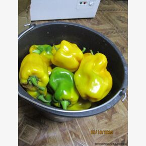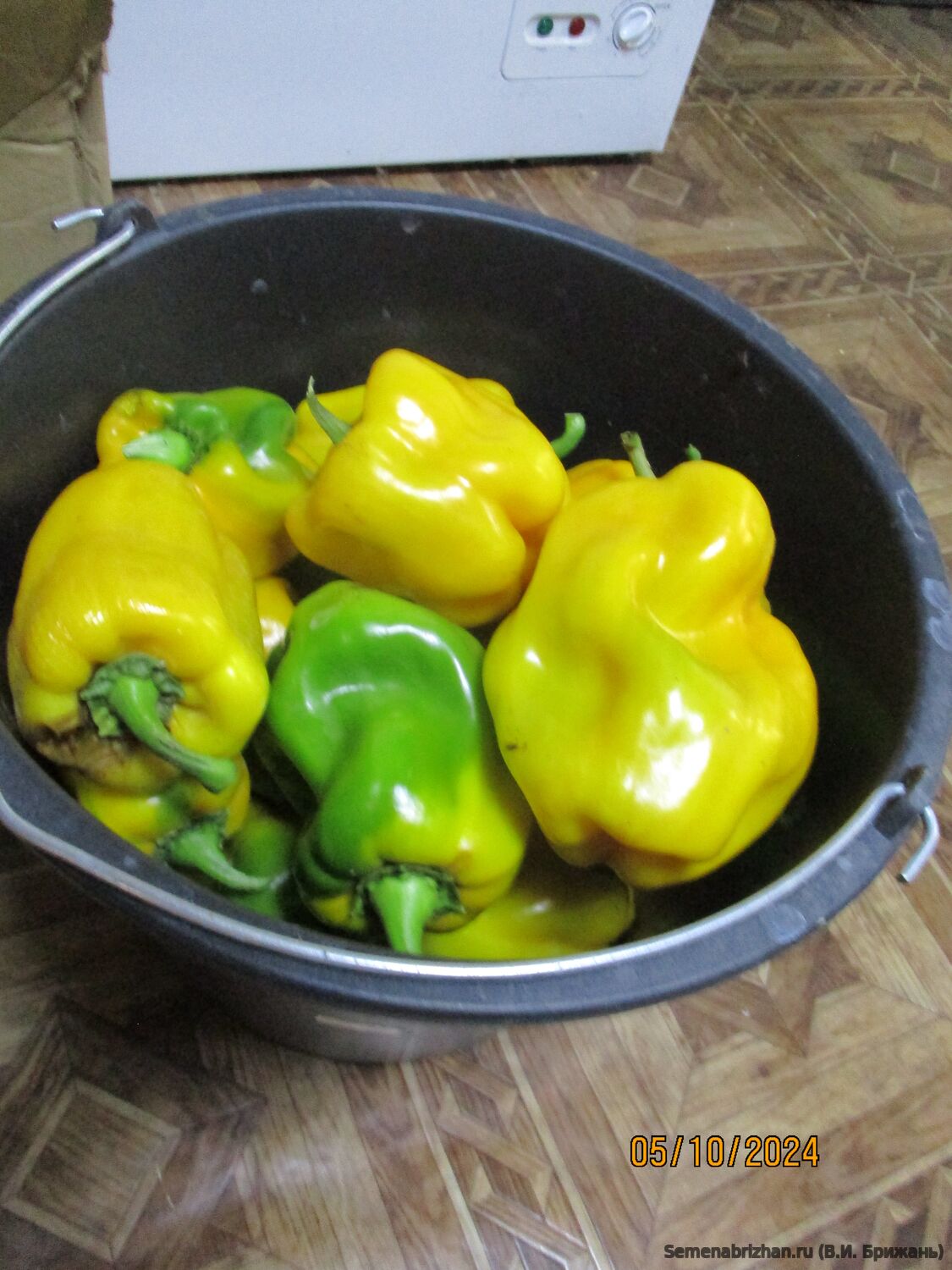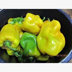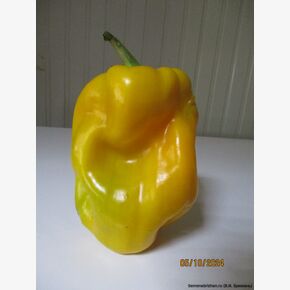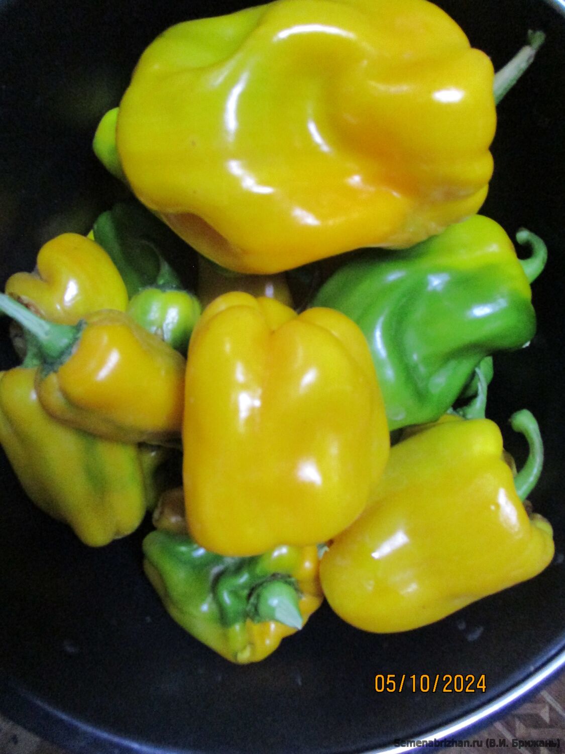 • Семейная коллекционная реликвия из США. Раннеспелый (105-110 дней). Растет мощными кустами с крепкими стеблями. Высота кустов доходит до 80 см, на них одновременно много плодов (до 12-15 штук).  Форма плода  похожа на выровненный куб, блочные, усеченно-кубовидные ( иногда в виде колокола с вмятинами по бокам) размером 18х10 см, толщина стенок 8-12 мм., масса плодов в среднем до 300 гр. Первые плоды вырастают до 500-600 гр. В тех.сп - светло-зелёный, в биол.сп - ярко жёлтый сочные, очень ароматные. Перец мясистый и толстостенный, его перикарпий в ширину превышает 1 см. Отличный вкус, мякоть твердая, сочная, очень сладкая, содержит много полезных компонентов – В-витамины, аскорбинку и каротин, макро- и микроэлементы. Эти перцы хорошо подходят для салатов, лечо, вносят изюминку в любое блюдо, зимние заготовки, соусы. Плодоносящие кусты выглядят очень нарядно и привлекательно. Ценность сорта: дружное созревание, высокая урожайность, декоративность, устойчивость к жаре и засухе, высокие вкусовые качества. Сладкие, сочные, красивые. На кусте 9- 12 таких здоровяков! Шикарный сорт! * Форма плодов может меняться в зависимости от условий. Сорт очень урожайный и неприхотливый. Сорт хорошо переносит похолодания и температурные скачки, показывает высокую завязываемость даже в неблагоприятные летние сезоны. Сорт обладает комплексной устойчивостью к заболеваниям. Высокая урожайность, крупноплодность, отличные вкусовые качества плодов. В пакете 20 шт. семян.