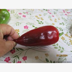 Коллекционный, редкий, интересный, самый наикрасивейший, раннеспелый сорт из США. Созревает через 90-110 дней после всходов. Детерминантный, растение с крупными листьями, быстро развивающееся, полураскидистое, средней высоты (40-50см), средне-облиственное. Стебель и основные побеги темно-зеленого цвета. Часто с бордовым или фиолетовым оттенком. Листочки темновато-зеленоватые. Плоды пониклые, ровные, глянцевые, удлиненно-конусовидные. Их диаметр 4,5-5 см, длина 10-15 см., вес плода от 100 до 200гр.Стенки толщиной 6 - 9 мм. Перцы замечательные, оправдывают свое название. Наблюдать за тем, как они меняют свою расцветку на кусте, очень интересно. В технической спелости, они светло-зелено - фиолетового цвета, созревая перчинки становятся тёмно-оранжево-красные с глубоким фиолетово бордовым оттенком, правда необычные? Мякоть толстостенная, хрустящая, сочная, сладкая. Плоды имеют нежную консистенцию, приятный вкус и запах. Вкус свежих плодов отличный. Использование универсальное: в свежем виде - для приготовления салатов, горячих блюд, фаршировки, приготовления лечо, для приготовления на гриле, консервации, запекания и замораживания. Предназначен для временных укрытий так и открытого грунта. Для увеличения урожайности, нужно соблюдать режим минерального питания и полива. Урожайность высокая. На кусту одновременно вырастает по 15-16 крупных перчиков (не считая мелких). Если снимать перец, не дожидаясь нормального размера, можно получить и 20 штук с куста. В пакете 5 шт. семян.