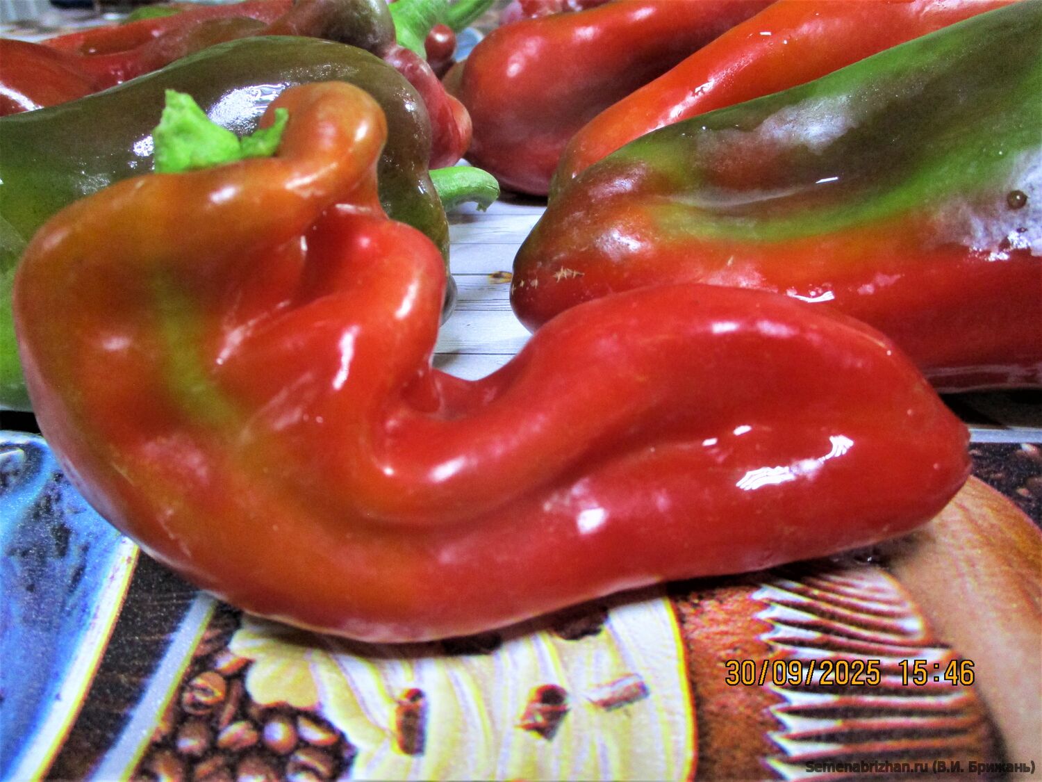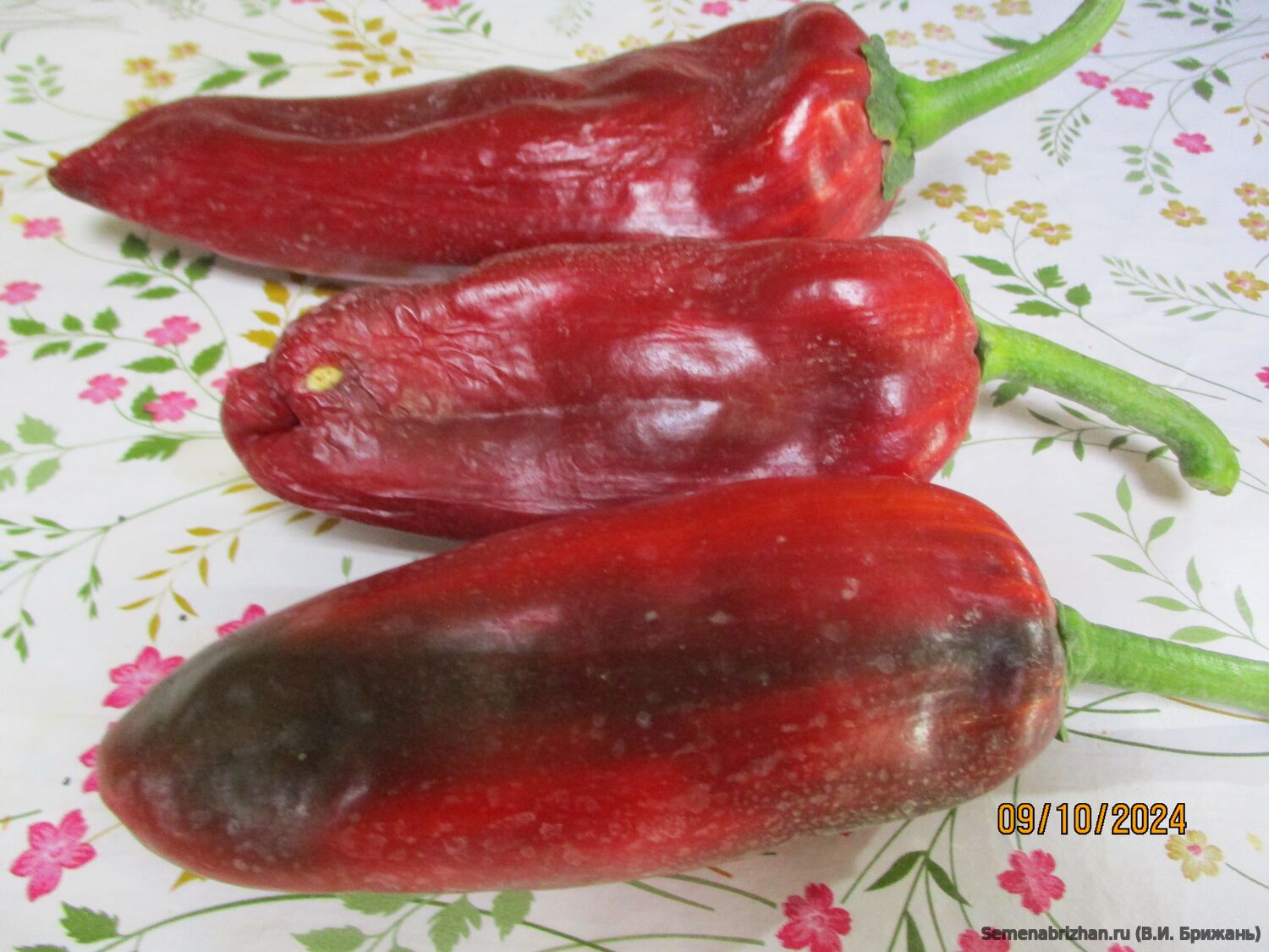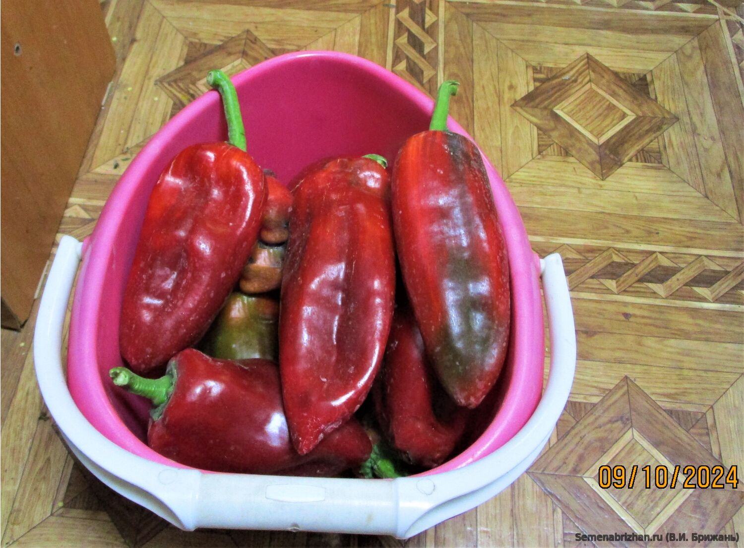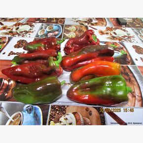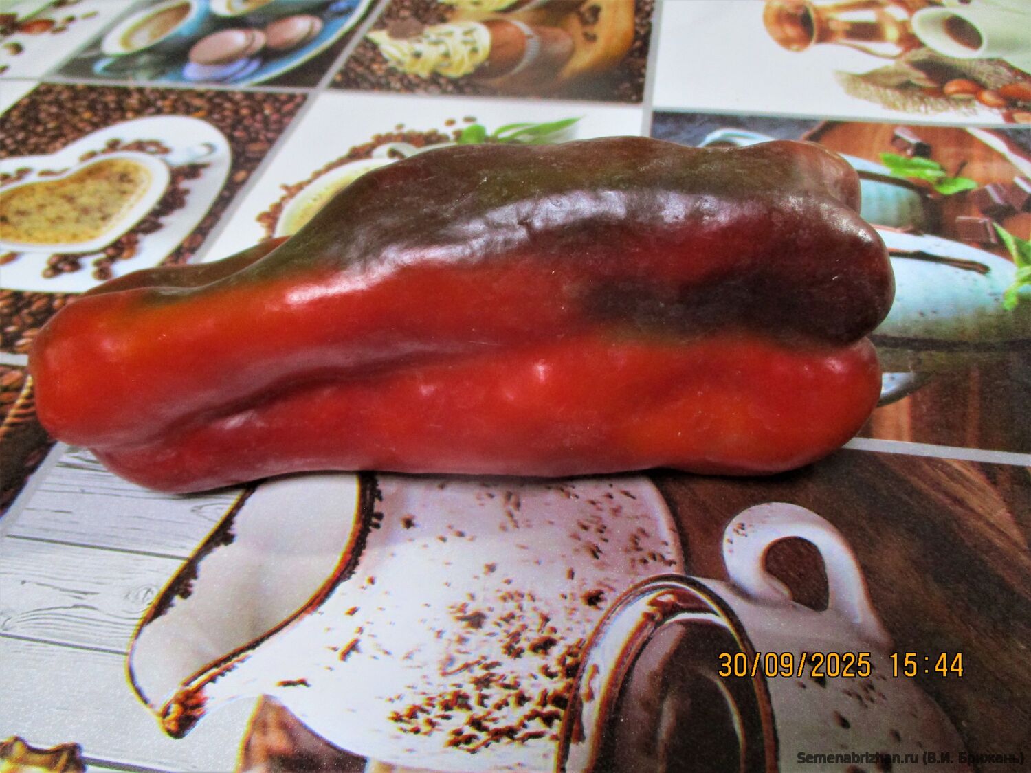 • Перец сладкий «Русский Гигант» — это раннеспелый (90-105 дней), коллекционный, шикарный и высокоурожайный сорт с гигантскими плодами удлиненно-цилиндрической формы, с тупым концом, достигающими до 25-30 см в длину и шириной 8х9 см, 3-4 камерные, и 300-500 гр. (а иногда и до 700 гр.) по весу, с толщиной стенки 1-1.2 см. Растение мощное, среднеоблиственное, до 70 см в высоту, нуждается в подвязке. В процессе созревания цвет плодов меняется от бордово-зелёного до насыщенно - малиново-темно-красного, создающего эффектное визуальное впечатление. Мякоть — сочная, сладкая, с легкой перечной ноткой, с десертным вкусом, идеально подходящая для свежего употребления, салатов, лечо, запеканок, фаршировки, консервирования и заморозки. Вкус — десертный, насыщенный и приятный, радует своим ароматом.  Выносливый, хорошо завязывает плоды. Этот ранний и очень урожайный сорт идеально подходит для тех, кто ценит сочные, сладкие и ароматные овощи. Русская мощь!!! Хит сезона! «Русский гигант» — отличный выбор для садоводов любого уровня, желающих получить крупные, вкусные и урожайные перцы. Болезнестойкий высокоурожайный куст, способен дать до 1 ведра красивых, крупных перцев. Ценность сорта: дружное созревание, высокая урожайность, декоративность, устойчивость к жаре и засухе, высокие вкусовые качества. Сладкие, сочные, красивые. На кусте 9- 12 таких здоровяков! Шикарный сорт! * Форма плодов может меняться в зависимости от условий. Сорт очень урожайный и неприхотливый.