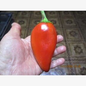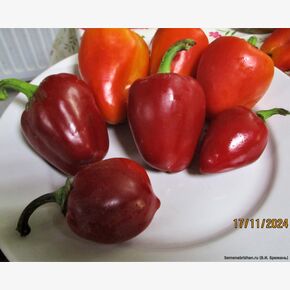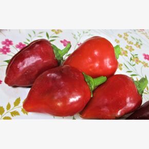 Семейная коллекционная реликвия из Италии. Сорт с очень красивыми, уникально мясистыми плодами, у которых очень толстые стенки и практически одна мякоть. Растение выносливое и подходит даже для регионов с неблагоприятным климатом. При создании минимальных условий сорт дает прекрасный урожай вкусных сочных плодов. Сорт скороспелый, период от массовых всходов до плодоношения составляет 110-115 дней. Благодаря своей скороспелости и устойчивости к стрессовым факторам среды, сорт может выращиваться как в в защищенном, так и в открытом грунте. Растения полуштамбовые, высотой 50-60 см. с обилием листьев. Листва гладкая, светло-зеленая, ее размер совпадает с размером плодов. На ветках вяжется много плодов: на 1 кусте до 30 штук. Чтобы стебли не ломались под их тяжестью, рекомендовано заранее подвязать куст. Положение плодов на растении пониклое. Плоды оригинальной обратно-каплевидной формы, с острым носиком, или серцевидно-конической формы, толстостенные, плотные, сочные и сладкие. Цвет плодов от темно-зеленого до ярко-красного! Очень вкусный, нарядный, сочный, сладкий и урожайный, прекрасного вкуса сорт. Его можно использовать для салатов в свежем виде, для запекания и фаршировки, для заморозки, сушки и консервации. Плоды не теряют вкусовых качеств в любом виде. Средняя масса товарного плода 120-140 г, толщина стенок – 8 мм, число гнезд – 2 - 3. Товарная урожайность 7,5-8,5 кг/м2. Для употребления в свежем виде и кулинарной переработки. В пакете 5 шт. семян.