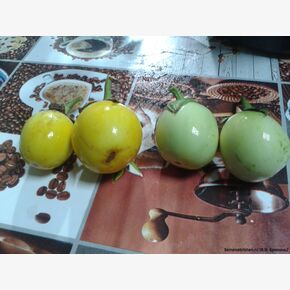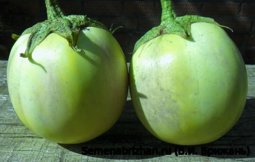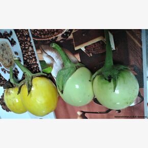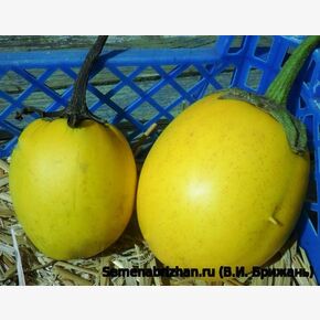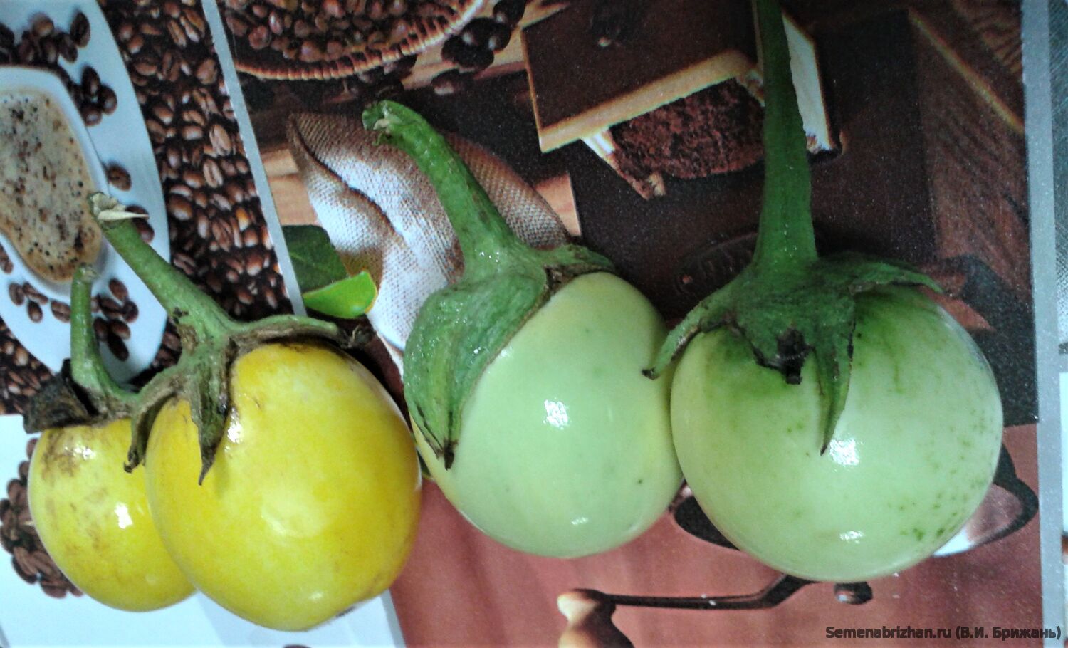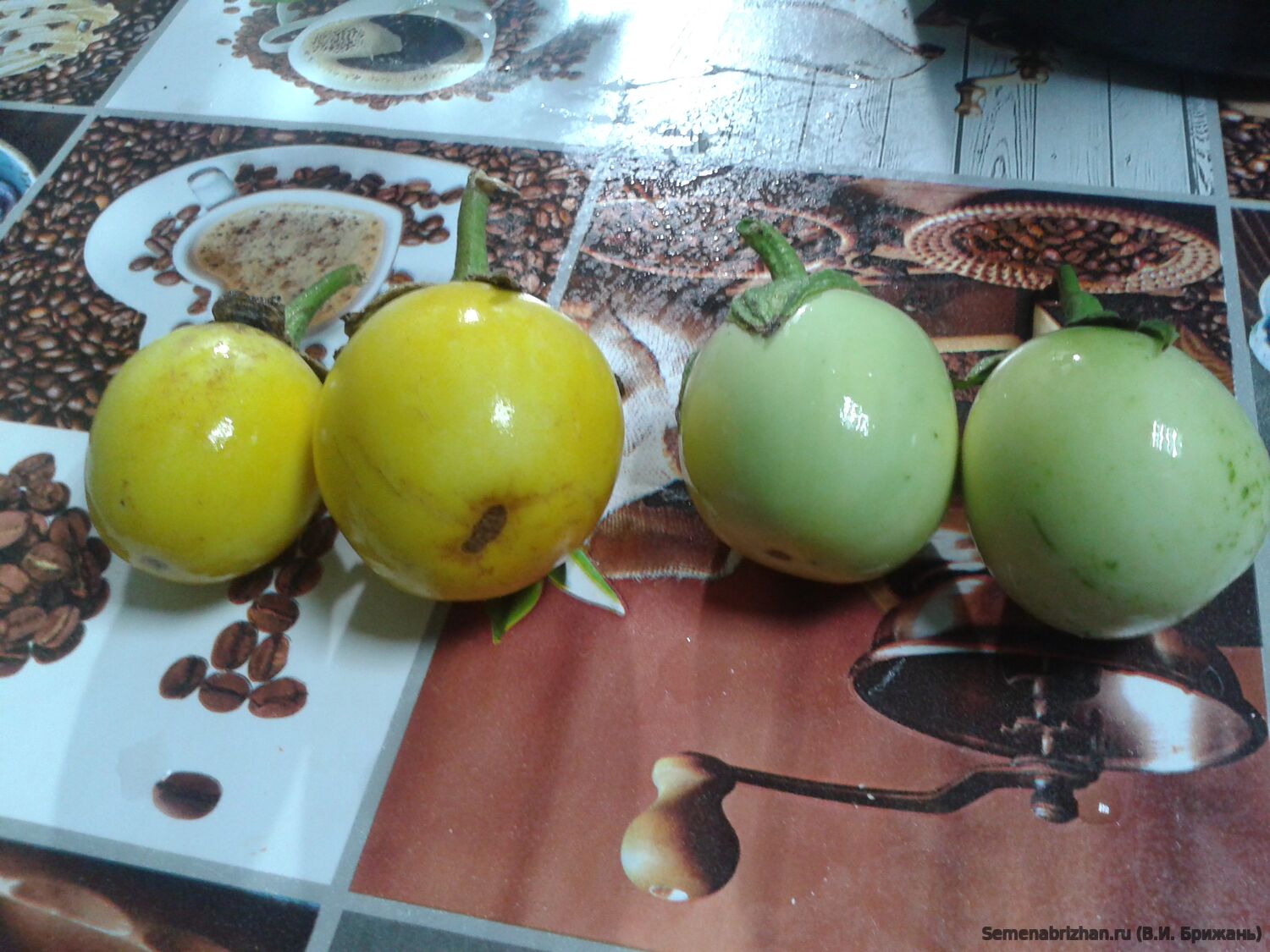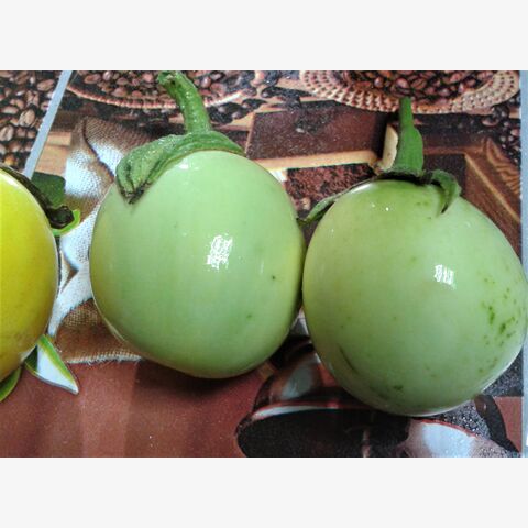 Сорт Зеленое яблоко (Apple green) был разработан селекционером Элвином Мидером из экспериментальной станции Университета Нью-Гэмпшира в 1964г, США. Получен путём скрещивания сладкого и горького баклажана «Китайский красный» (Solanum integrifolium). Сорт супер-ранний (до 70 дней) отлично подходит для выращивания, как в южных, так и в северных регионах России. Растение в открытом грунте формирует компактный, хорошо ветвящийся куст «без шипов», высотой до 55 см и 45 см в диаметре. Плоды имеют форму большого яблока. Размер плода: 15х13 см. В тех спелости они зелёные, в биологической - жёлто-зелёные, до 13 см в диаметре, массой до 180-200 гр., с тонкой кожицей. Мякоть деликатесного вкуса, необыкновенно плотная, нежная, белая, совсем без горечи, долго не темнеет, жарится и запекается быстрее обычного баклажана. Вкусовые качества отличные. Один из лучших сортов для запекания с томатами и приготовления икры. Этот сорт создан специально для выращивания в малообъемной культуре (горшках, контейнерах) и обладает длительным периодом плодоношения. Урожай может убираться как в начальной стадии зрелости, для потребления целыми плодами, так и позже, когда плоды достигнут «взрослых» размеров. Посев на рассаду проводят в конце февраля, пикировку – в фазе семядолей. Высадка рассады – в конце мая. Формировка: удаление всех боковых побегов и листьев до первой развилки. К концу июля на растении оставляют 5-6 самых крупных завязей, другие цветы и завязи удаляют. Схема посадки 40х60 см. Товарная урожайность до 5,5 кг/м2. Сорт очень урожайный, плодоносит до заморозков, хорошо растет в доме на окне. В пакете 20шт. семян.