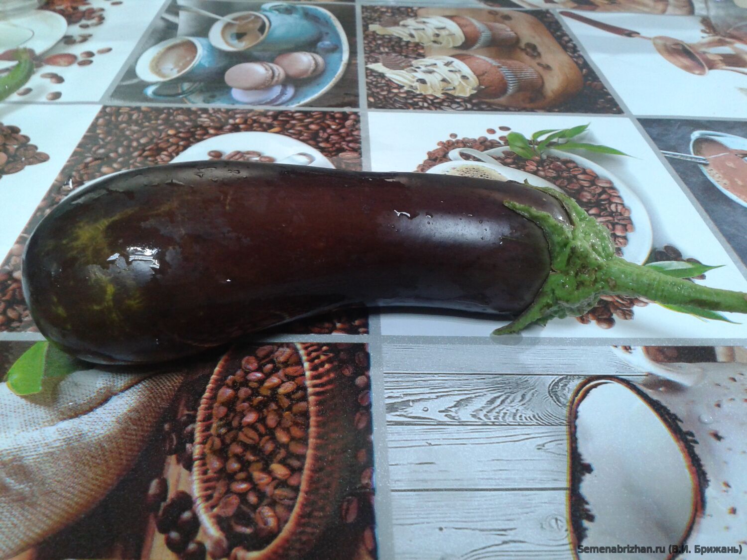 Включен в Госреестр по Российской Федерации для выращивания в открытом грунте и под пленочными укрытиями в ЛПХ. Скороспелый сорт для открытого грунта и пленочных укрытий. Растение высокое. Стебель с антоциановой окраской слабой интенсивности, опушенный. Лист крупный, зеленый, слабоморщинистый, край слабоволнистый. Плод цилиндрический, длиной 12-19 см, диаметром 4,5-8 см., темно-фиолетовый с глянцем, массой до 200 г. Шипы на чашечке отсутствуют. Мякоть белая, без горечи, с выдающимися кулинарными характеристиками – приятным нежным вкусом и удобной формой плода для нарезки вдоль при приготовлении рулетиков. Идеально подходит для приготовления икры и рулетов, а так же тушение, запекание, консервирование, имеет отличный вкус. Сорт устойчив к погодным стрессам, хорошо переносит температурные максимумы в условиях теплицы, не сбрасывает завязей. Для сорта характерна стабильная урожайность (под пленочными укрытиями – 5-7 кг/м2). Длительно сохраняет товарные качества после сбора, хорошо переносит транспортировку. Содержит много минеральных веществ, особенно калия. Плоды без горечи, не требуют вымачивания. Подходит для массового производства, так как очень урожайный и не капризный. В пакете 10 шт. семян.