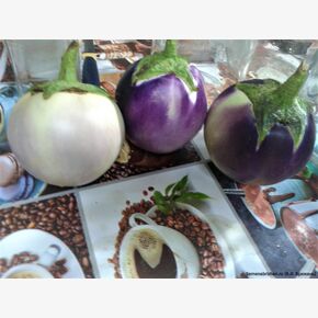 Старинная семейная реликвии из Флоренции (Италия). Урожайный, коллекционный, потрясающий старинный сорт премиум класса из региона: Тоскана Италии. Необычный сорт с крупными округлыми плодами (диаметр 12-14 см), розовато-лиловых матовых оттенков, массой 200-280 г (до 500 г). Ранний сорт, вступает в плодоношение на 70-й день после пересадки 45-ти дневной рассады. Куст среднерослый, раскидистый, высотой до 70 см в открытом грунте и до 110 см в парниках. Шипы на растении редкие. Плоды округлой формы диаметром 12-14 см, очень плотные, тяжелые, массой 500-600 грамм, бело-розово-сиреневой окраски в тех.спелости и в биологической — жёлто-оранжевой, с шоколадным румянцем, с белой мякотью, очень высоких вкусовых качеств. Плоды без горечи, пригодны к употреблению в любой стадии их развития, долго сохраняют товарные качества, универсальны в употреблении. Красивые сладкие баклажаны хорошо сочетаются с луком, чесноком, помидорами, сладким и острым перцем, цуккини, жареным мясом, кокосовым молоком, свежими и плавлеными сырами, а также зеленью, например, петрушкой и базиликом. А так же станет фаворитом для приготовления блюд, подчеркивающих ее сладкий, мягкий вкус — например, запекания кружочками, жарки на гриле или использования в классических рецептах, таких как баклажаны пармезан. Содержание сахаров настолько высоко, что плоды можно употреблять в пищу в сыром виде. Обладает превосходными вкусовыми качествами, великолепен в салатах, икре и рагу, незаменим при мариновании и засоле целиком. Их форма и размер делают их идеальными для частичного выдалбливания, начинки и выпечки. Мякоть деликатесного вкуса, необыкновенно плотная, нежная, совсем без горечи, долго не темнеет, жарится и запекается быстрее обычного баклажана. Один из лучших сортов для запекания с томатами и приготовления икры. Сорт устойчив к вертициллезу.