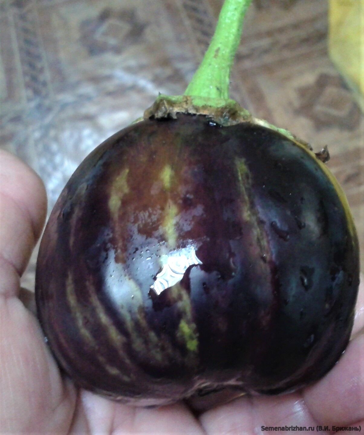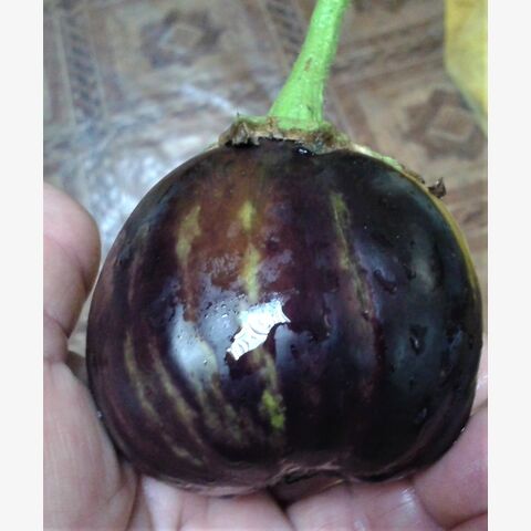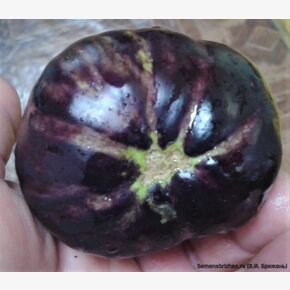 Коллекционный, среднеспелый (110 дней от всходов до технической спелости), холодостойкий сорт для выращивания в открытом грунте и для пленочных укрытий и теплиц. Происхождение сорта: Россия. Растения небольшие, высотой до 55 см., формируют до 5-6 плодов одновременно. Плоды фиолетово-черного цвета. Форма плода грушевидная, средний размер 14х6 см. С аппетитными яйцевидными или шаровидно-овальными плодами до 6-8 см. в диаметре, массой 50-100 гр. Мякоть необыкновенно плотная, нежная, белая, совсем без горечи, жарится и запекается быстрее обычного баклажана. Вкусовые качества отличные. Один из лучших сортов для запекания с томатами и приготовления икры. Рекомендуется для сервировки стола, использования в домашней кулинарии и цельноплодного консервирования. Рекомендуется для выращивания в открытом грунте (с подвязкой к кольям) и в теплицах. Этот сорт можно использовать для выращивания в малообъемной культуре (горшках, контейнерах) и обладает длительным периодом плодоношения. Растение в открытом грунте формирует компактный, хорошо ветвящийся куст «без шипов», высотой до 55 см и 45 см в диаметре. Урожай может убираться как в начальной стадии зрелости, для потребления целыми плодами, так и позже, когда плоды достигнут «взрослых» размеров. Растение и плоды очень декоративны, в теплую погоду могут прекрасно расти на загородном участке в вазонах. Ценность: отличная урожайность, отсутствие шипов на чашечке, выравненность плодов, высокие вкусовые качества продукции, неприхотливость выращивания. Культура теплолюбива, требовательна к свету и влаге. В пакете 20 шт. семян.