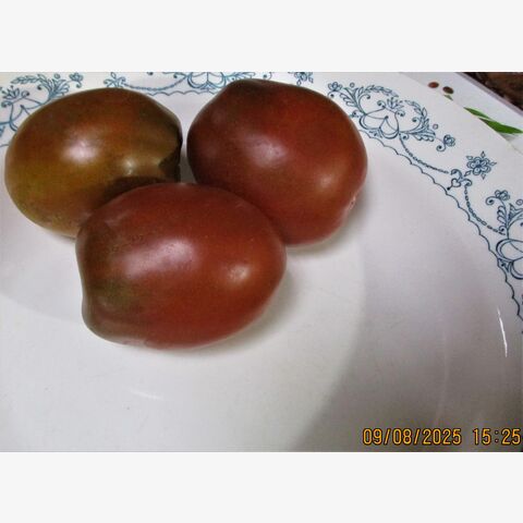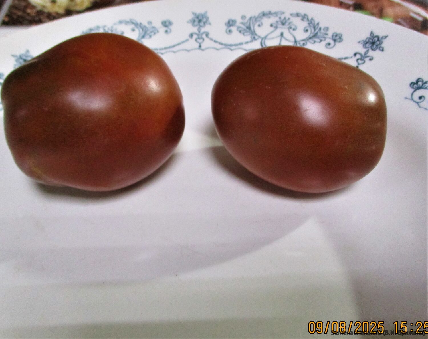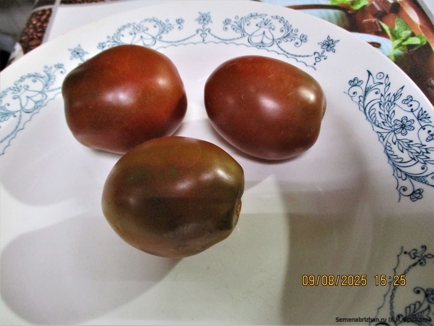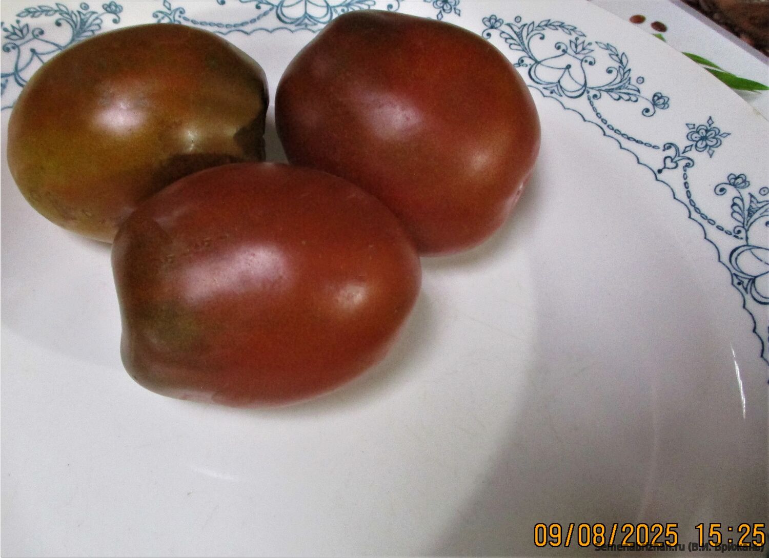 Старинная, редкая, коллекционная, фамильная реликвия родом из Италии. Индет, высокорослый (рост неограничен),высокоурожайный, среднераннего срока созревания (95-105 дней от всходов до начала созревания). Дает сильные среднеоблиственные индетерминантные растения, обычно достигающие 50-100-сантиметровой длины, но порой доходящие до высоты 1,8 м. Мощные, крепкие растения с феноменальной урожайностью до окончания сезона. Завязал все до одной кисти, активно работал до конца сезона. Плоды одномерные, чистые, не трескаются, плотные, мясистые, вкусные, темно-пурпурно-шоколадного цвета в форме небольшого сердечка, некоторые плоды округлые и сливовидные, массой до 150-180 гр,в кистях по 5-8 плодов, мясистые, сладкие, очень сочные. Прекрасно подходят для потребления в свежем виде для салатов, переработки на соки и соусы, сладкие плоды с нежной консистенцией. Сок из этих томатов похож на красное вино. Отлично подойдут для консервирования, вяления, заморозки и свежего употребления! Мякоть мармеладно-медовая, очень сладкая, сочная. Плоды плотные и лежкие. Долго лежат без потери вкуса и качества. Очень понравился урожайностью и качеством плодов. Высокоурожайный сорт. Подходят для любого вида переработки, но лучше всего консервировать в банки и вялить! Урожайный, неприхотливый, стрессоусойчивый. Ценность сорта: высокая урожайность и товарность, крупноплодность, выравненность плодов и высокие вкусовые качества. В пакете 20 шт. семян.