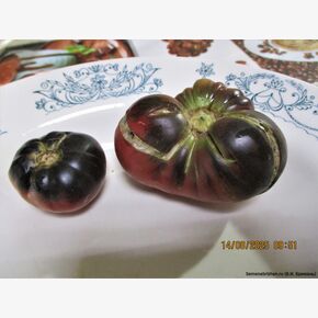 Достойная новинка томата с мировым именем. Сорт «Black beauty» создан Американцем Бредом Гейтсом. Самый тёмный томат в мире! Антоциановый суперфуд на вашей грядке. Среднеранний, высокорослый (индетерминантный) сорт премиум-класса. Первый урожай созревает через 112-115 дней после всходов. Растение мощное, требует подвязки, в теплице достигает высоты 160-180 см. Отлично подходит для теплиц, индетерминантные кусты достигают высоты 2-х (и более) метров и позволяют получить свыше 15-16 кг/ м 2 ароматных, сладких плодов. Характеристики плода: Плоды плоскоокруглые (тип биф-томат), средним весом 180-220 гр., вес максимально крупных – до 500 гр. Это действительно самый тёмный сорт из существующих: под воздействием солнца кожица становится чернильно-чёрной. В период налива помидоров их оттенок меняется от темно-фиолетового с зелеными вкраплениями до черно-красного в потребительской спелости. Мякоть тёмно-красная, мясистая, плотная. Вкус: Очень богатый, насыщенный, сладкий с лёгкими фруктовыми нотками. Считается одним из самых вкусных среди "синих" томатов. Эффектная окраска и великолепный вкус продукции не оставят равнодушным ни одного гурмана. Польза и хранение: Благодаря рекордной концентрации антоцианов (мощных антиоксидантов) этот томат замедляет процессы старения. Плоды отлично висят на кусте, не перезревая, и прекрасно хранятся при комнатной температуре после сбора. *Форма плодов может меняться в зависимости от условий. В пакете 5 шт. семян.