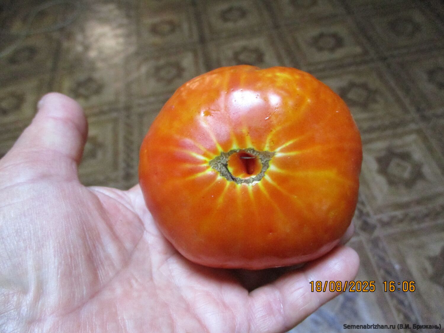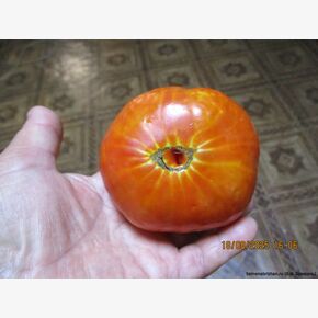 Сорт коллекционная-реликвия, известен с 1891 года, получил распространение от Peter Henderson & Co, США. Среднеспелый старинный сорт для открытого грунта и плёночных теплиц, созревание наступает через 110-115 дней от полных всходов. Растения сильнорослые (150 см), требуют подвязки и формирования. Плоды красные, плоскоокруглые, очень мясистые, ребристые, не выравненные по величине, массой около 400 г. Семенные камеры содержат очень мало семян. Рекомендуется для употребления в свежем виде и для переработки на сок. Мясистые плоды отличного вкуса. Плоды типа бифштекс. Стенки средней толщины. Вкусовые качества отличные, вкус сбалансированный, кисловато-сладкий с преобладанием сладости. Сорт устойчив к растрескиванию плодов, к резким перепадам температур. В пакете 5 шт. семян.