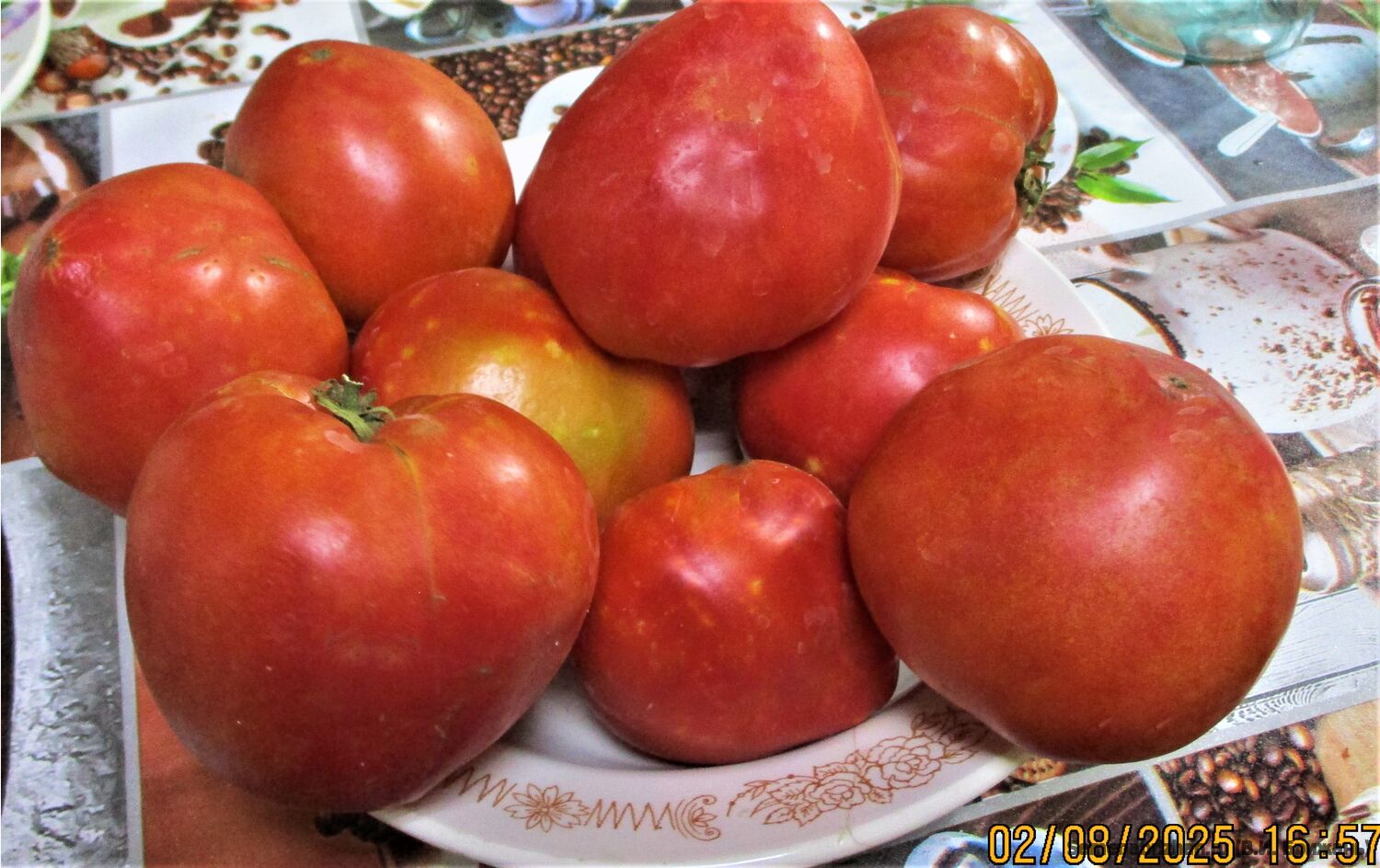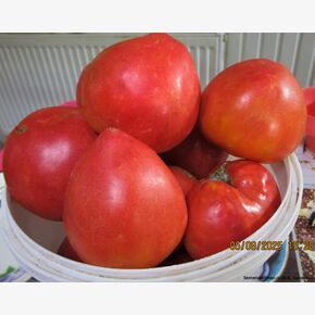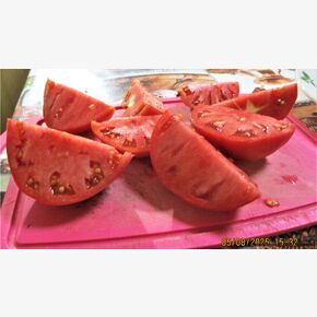 Томат Томата Говядина с куста - это один из лучших коллекционных сортов. Созревание томата Говядина с куста – дружное. Чтобы собрать первый урожай, от всходов должно пройти порядка 110-125 дней. Сорт индетерминантный, высокорослый, до 2-х метров. Плоды: Темно-розового или малинового цвета, плоскоокруглой формы, очень мясистые (малосемянные). Мякоть плода имеет темно-розовый цвет, точно такой же, как и мякоть свежей говядины. Вес одного плода в среднем составляет 400-600 г, но те плоды, которые находятся на самых нижних ветвях, могут достигать веса порядка 1 кг. Вкус сладкий, с умеренным кисловатым привкусом. Форма сердцевидно-округлая, немного сплющена. Возле плодоножки умеренная ребристость. Вкус и назначение: Плоды сладкие, ароматные. Сорт салатного назначения, также используется для приготовления паст, соусов и густых соков.Использовать этот сорт помидора можно как в консервации, приготовлении различных салатов, соусов, соков, так и как основной компонент горячих блюд. Плоды красивые, кожица у них блестящая, цвет от красно-розового до насыщенного розово-малинового. Мякоть занимает почти всё пространство плода. Семенные камеры очень маленькие. Мякоть сочная, красивого темно-розового цвета и очень вкусная. Имеет гармоничный сладкий вкус с легкой приятной кислинкой. И ещё мякоть имеет выразительный аромат, которым могут похвастаться далеко не все сорта. Вкус изумительный, сладкий с потрясающим ароматом.Урожайность томата достаточно высокая, так как с 1 м2 можно собрать около 14-16 кг овощей. Устойчивость: Обладает хорошей завязываемостью плодов в разных погодных условиях, длительное плодоношение. Сорт отличается «мясной» текстурой мякоти, за что и получил свое название. Рекомендуется для любителей крупных розовоплодных томатов.Крупные агрофирмы России семена этого сорта не выпускают.