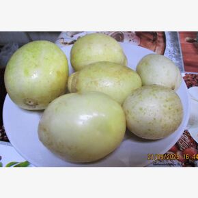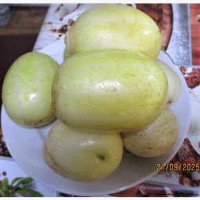 Среднеспелый редкий старинный, коллекционный сорт Итальянской селекции. Тип растения: среднеспелый (50–54 дня от всходов), мощный, урожайный. зеленцы с необычной формой плодов и кремово-белой окраски, бочкообразные, с редкими пупырышками, без горечи, длиной 6-9 см, весом 60- 80гр. Округлые зеленцы формируются на растении гирляндами, по 3-4 шт. в каждом узле. Мякоть очень нежная и сладкая. Использование традиционное – салатное, засолочное, баночное консервирование. Вкусовые качества: мякоть сочная, кожица нежная, вкус отличный. Урожайность в теплице — до 30 кг с 1 кв.м. Урожай итальянских белых огурцов поспевает на 2−3 недели раньше большинства сортов. В средней полосе России сбор огурцов этого сорта в открытом грунте начинают в конце июля. Ценность сорта: высокая урожайность, на фоне зелени белые плоды смотрятся достаточно экзотически, обладает отменными вкусовыми качествами.Освежающий огурец итальянского сорта, идеально подходящий для позднего лета, имеет хрустящую мякоть и мало семян. Круглая или овальная форма, беловато-зеленая пушистая кожура делают его прекрасным дополнением к салатам, а его вкус не уступает вкусу микс-салатам и другим садовым овощам. Устойчивость: сорт обладает хорошей устойчивостью к болезням устойчив к кладоспориозу, МР и ЛМР. Особенности выращивания: Можно выращивать как в открытом грунте, так и под пленочными укрытиями. Посев на рассаду — в начале мая. Высадка рассады в грунт — в конце мая – начале июня в фазе 3-4-х настоящих листьев. Посев непосредственно в грунт – в мае – июне. Схема посадки: 60х30 см. Рекомендуются ежедневные сборы корнишонов. Требует регулярного полива и подкормок для максимальной урожайности. В упаковке 5 семян.