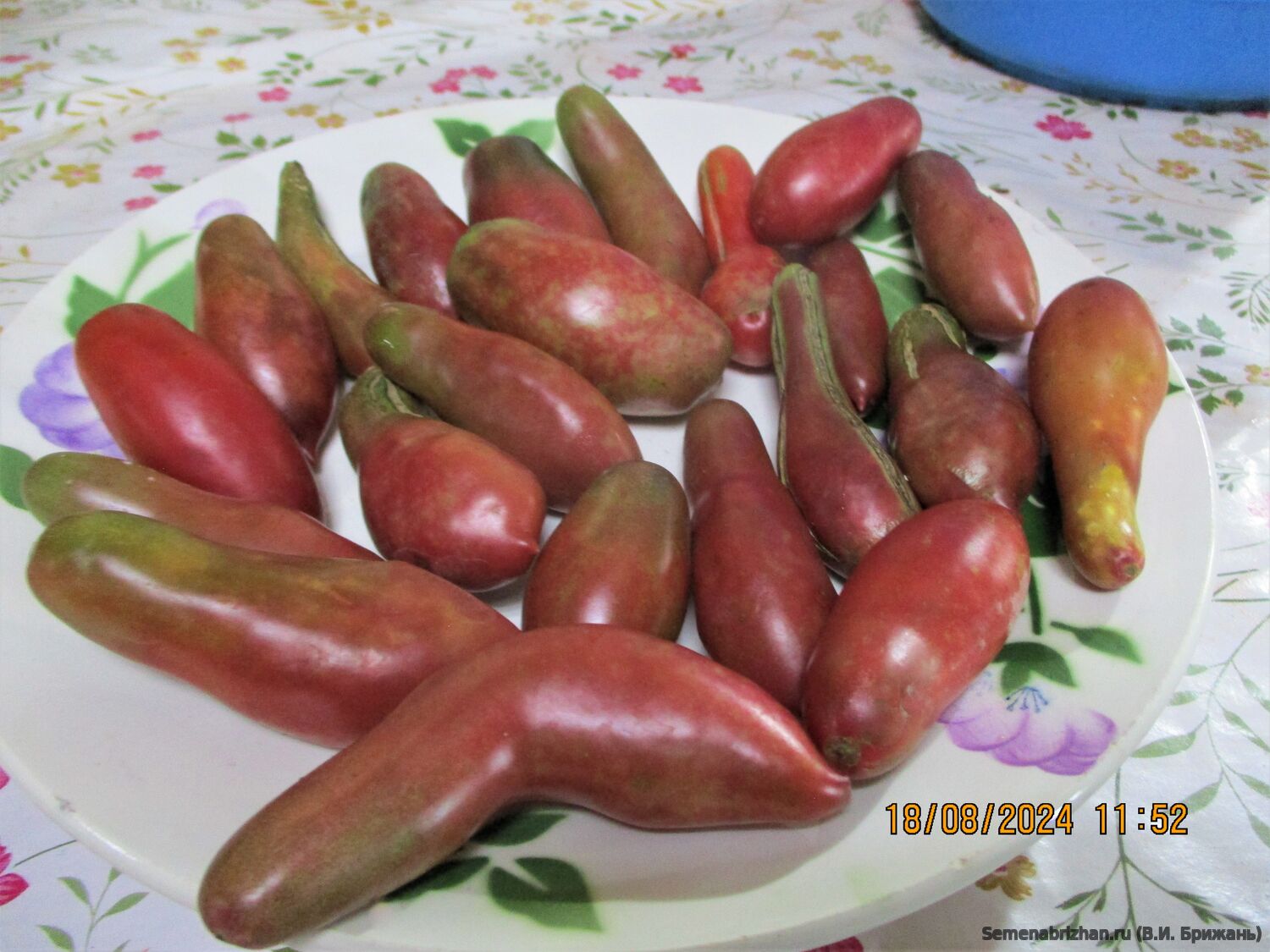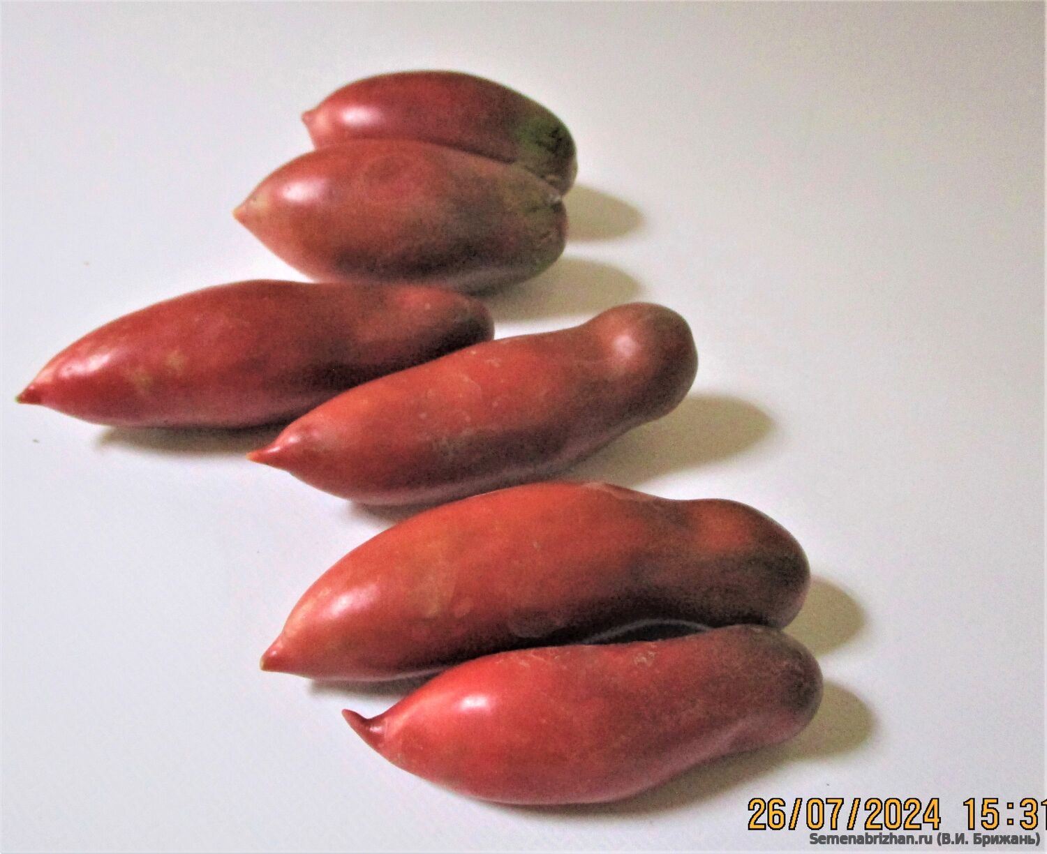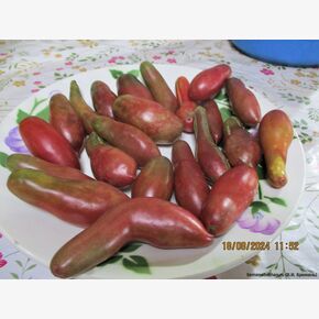 Коллекционная редкая новинка селекции из Дании. Получил высокую оценку истинных гурманов домашних заготовок. Длинноплодный лиановидный сорт для открытого и защищенного грунта. Гарантирует стабильно-высокие урожаи качественных товарных плодов, идеально подходит для вкусной зимней консервации и засола! Сорт среднеранний. от всходов до начала созревания плодов 110-115 дней. Растение высотой до 2 м, среднеоблиственное. Кисть простая с 5-7 насыщенно бордово - розово - пурпурными, тонко-удлиненными необычными плодами до 10-15 см.длиной, сигаровидной формы, весом до 40-80 гр. Благодаря плотной мякоти и прочной кожице не растрескиваются, прекрасно транспортируются и хранятся. Вкус и мякоть: очень сладкий, мякоть плотная, мясистая, малосемянная. Использование: идеально подходит для засолки и зимних заготовок, для консервации, вяления и свежего потребления.Особенности выращивания: среднеспелый, требует формирования (обычно в 2-3 стебля), может поражаться вершиной гнилью при нерегулярном поливе. Плодоношение обильное. урожайность до 10-12 с 1 кв. м. Рекомендован для выращивания в теплицах и пленочных укрытиях. Сорт относится к категории экзотических, коллекционных томатов, известен своим оригинальным цветом и выраженным сладким вкусом. В пакете 5 шт. семян.