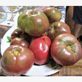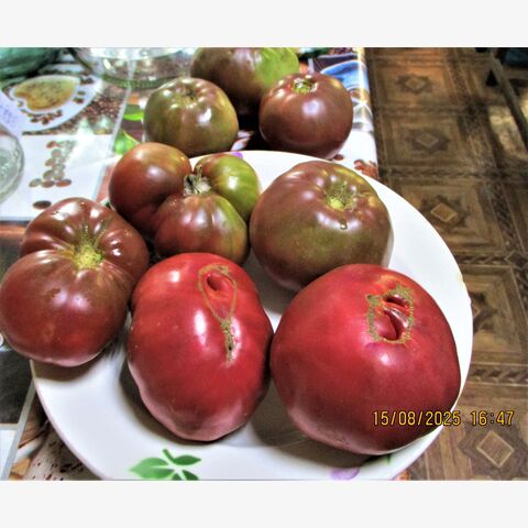 Томат Dwarf Wild Fred (Гном Дикий Фред) — среднеспелый, детерминантный штамбовый сорт из проекта «Гном томатный» (США/Австралия). Сорт создан в рамках проекта Dwarf Tomato Project при скрещивании родительских сортов «New Big Dwarf» и «Carbon» в 2010 году. Суть проекта заключалась в создании особых сортов томатов с определенной характеристикой.Они должны были отличаться высокой урожайностью, лежкостью, устойчивостью к болезням и способностью к полноценному росту в ограниченном пространстве. Первоначально полученный новый сорт назвали «Sleazy», что в переводе означает «неряшливый». Но позже, один из основателей проекта − Craig LeHoullier, переименовал его Wild Fred в честь своего отца. Авторы проекта Крейг ЛеХуллиер (США) и Патрина Нуске-Смолл (Австралия) задумали его, поняв, насколько потребители ограничены в выборе компактных сортов помидоров для небольших участков, для выращивания на балконах и в кашпо.Для первых сортов были взяты имена гномов из знаменитой «Белоснежки». К 2019 году коллекция томатов-карликов насчитывала более 100 наименований. Назвав один из сортов Dwarf Wild Fred (Дикий Фред), Крейг ЛеХуллиер отдал дань памяти своему отцу, который еще в детстве вдохновил его заниматься разведением растений. Нередко представителей этой серии называют колоновидными, поскольку те имеют один или два слабо разветвленных стебля и потому не требуют регулярного пасынкования. Сроки созревания: Среднеспелый (100–115 дней от всходов). Отличается компактными кустами (0,5–1,1 м), морщинистой листвой, высокой урожайностью (14–20 кг/м²) и неприхотливостью. Куст: Штамбовый, детерминантный (низкорослый). Лист картофельного типа, морщинистый, темно-зеленый. Высота в открытом грунте 0,5-0,8 м, в теплице до 1 м. На кустах образуется 7-8 плодоносных кистей, на каждой по 5-6 помидоров. Плоды плоскоокруглые, иногда с ребристостью у плодоножки, пурпурно - темно - розовый с коричнево-фиолетовым оттенком, массой в среднем 180–300 г, отдельные плоды до 330–350 гр., с насыщенным сладким вкусом и мясистой мякотью. Сочная мякоть, с нежно-вишневой ноткой. По мере созревания оттенки меняются от темно-розового до коричнево-фиолетового, а возле плодоножки образуется темно-зеленая корона. Долго не перезревают, могут повисеть спелые на кусте, не трескаются.Томаты лежкие и транспортабельные. Вкус: Очень высокий, гармоничный сладкий вкус с легкой пряной ноткой. Мякоть маслянистая, сочная. Вкус бесподобный! Сладкий, с пряно-копченым оттенком, с ореховыми нотками. Достоинство сорта: удачное сочетание низкорослости с крупноплодностью. Мякоть плотная, мясистая, бордово-коричневая с розоватой сердцевиной, не трескается и отлично держится на кисти. Вкус - пряно-сладкий, насыщенный, с лёгкой кислинкой. ИСПОЛЬЗОВАНИЕ: для свежего потребления, салатов, овощных нарезок, для консервации, вяления. Также отлично подходит для технической переработки: соки, пасты, лечо, пюре, соусы, аджики, придает прекрасный цвет и насыщенный аромат. Плоды этого сорта отлично используются в тушении, запекании, жарке с другими продуктами, причем в результате технической переработки и приготовления эти помидоры не теряют своих полезных качеств и веществ. Подходит для салатов, соусов, паст и фаршировки, не разваривается при термообработке. Не требует формирования.Не требует пасынкования. Плодоношение до заморозков. Это натуральный сорт томата.Поэтому из зре