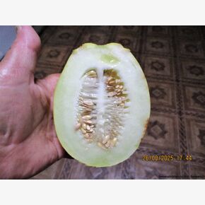 Раннеспелый азиатский коллекционный старинный сорт мелкоплодной ароматной и сладкой дыни. Срок созревания: 65-75 дней. Разработан в Китае и завезен в Европу и Америку в 1880-х годах. Плоды овальной формы, с бархатной (на ощупь) кожурой, очень тонкой. Если переспеет, то кожуру можно даже есть, она истончается до 1 мм., гладкие, ярко-жёлтые, без сетки. Средний вес плода: 0,2-0,5 кг. Мякоть кремово-желтая, или белая, сочная, тающая, очень сладкая, с нежным ароматом и фруктовым вкусом. Этот сорт был очень популярен в викторианские времена для приготовления сладких солений, пирогов и варенья. Сорт устойчив к антракнозу и мучнистой росе, неблагоприятным погодным условиям, относительно холодостоек, поэтому подходит для выращивания в регионах с коротким прохладным летом. Из-за небольшого размера и плотной структуры мякоти этот сорт исторически использовался для приготовления маринованных солений (в уксусе), варенья, пирогов, а также употреблялся в свежем виде. Благодаря своему вкусу и нежному, сладковато-терпкому аромату, идеально подходит для свежих фруктовых десертов. Великолепна не только в свежем виде, но также для переработки: её вялят, готовят повидло, варенье, цукаты, солят, квасят, маринуют и даже жарят в кляре. ИСПОЛЬЗОВАНИЕ: отменно хороша в свежем виде — порезанная дольками или кубиками без кожуры (в жаркую погоду — со льдом!). Из неё получаются отличные коктейли, кисели, лимонад. Детям добавляем дыню в кашу и творог, готовим фруктовые супы и салаты. На зиму дыню можно вялить, перерабатывать в дынный мёд, готовить джем, повидло, цукаты. Благодаря плотной коре плоды хранятся около 1,5 месяцев. Высокоурожайный средне-ранний неприхотливый дружно созревающий сорт с отменными вкусовыми качествами и великолепной лёжкостью. Пригоден для выращивания и в теплицах (в северных регионах), и в открытом грунте; устойчив к фузариозу и мучнистой росе. Сорт устойчив к неблагоприятным факторам среды, отлично хранится. Посев семян дыни на рассаду производят в апреле, на постоянные грядки растения высаживают в возрасте 30-35 дней. Схема посадки зависит от способа выращивания: в открытом грунте под каждое растение отводят не менее 1кв.м, в теплице саженцы сажают по схеме 50х70см. При формировке растений нужно учитывать, что у сортовой дыни (в отличие от гибридных сортов) женские цветки, образующие завязь, располагаются преимущественно на боковых побегах, поэтому формировать куст сортовых растений начинают с прищипывания главного стебля. После третьего или четвёртого листа удаляют точку роста, тогда из пазух листьев начинают расти боковые отростки (побеги второго порядка). Для плодоношения оставляют 2–3 таких побега, на всём кусте сохраняют не более 6 плодов.В пакете 5 шт. семян.