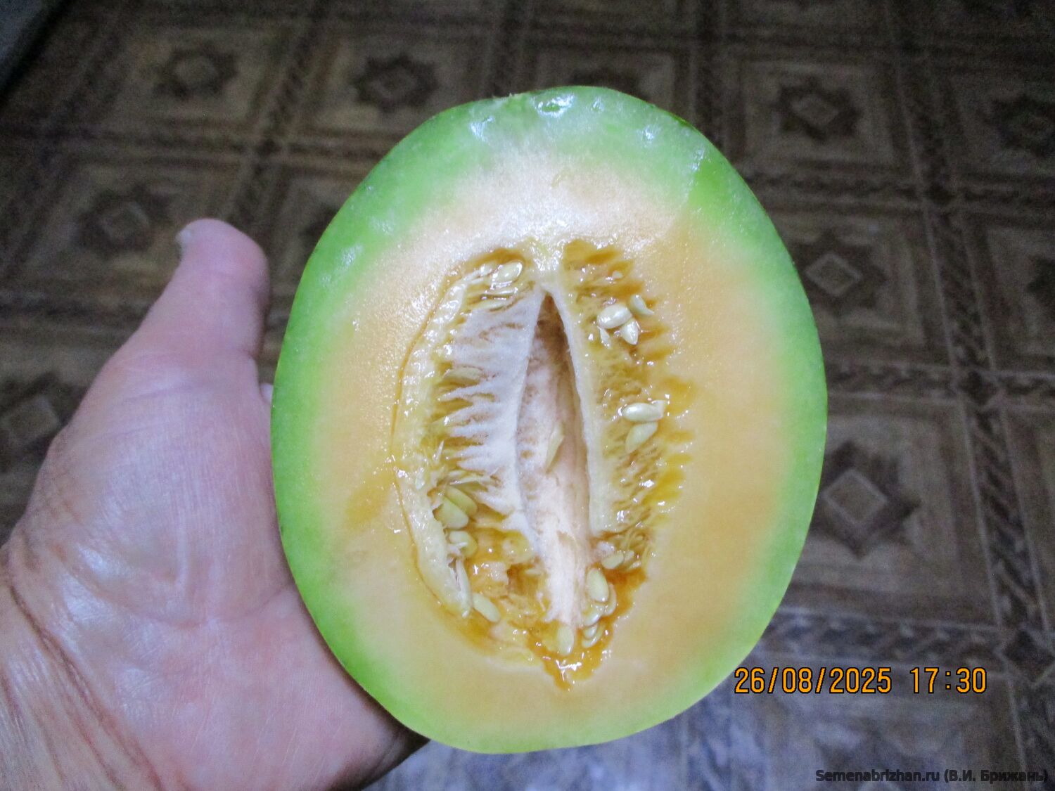 Это редкий коллекционный раннеспелый сорт Китайской селекции, отличающийся необычным внешним видом: плоды имеют гладкую кожуру светло-зеленого или изумрудного цвета. Мякоть обычно светло-оранжевая, сочная, хрустящая и очень сладкая. Сорт ценится за высокую урожайность, устойчивость к болезням и оригинальный, освежающий вкус. Основные характеристики дыни Цинъюй: Внешний вид: Небольшие, округлые или овальные дыни. Кожица тонкая, зеленоватая, часто покрыта светлой сеточкой, становится немного желтоватой при полном созревании. Средний вес плода: 0,2-0,5 кг. Мякоть: Светло-оранжеая или кремово-розовая, плотная, хрустящая (напоминает грушу), очень сочная, тающая, очень сладкая, с нежным ароматом и фруктовым вкусом. Этот сорт был очень популярен в викторианские времена для приготовления сладких солений, пирогов и варенья. Великолепна не только в свежем виде, но также для переработки: её вялят, готовят повидло, варенье, цукаты, солят, квасят, маринуют и даже жарят в кляре. ИСПОЛЬЗОВАНИЕ: отменно хороша в свежем виде — порезанная дольками или кубиками без кожуры (в жаркую погоду — со льдом!). Из неё получаются отличные коктейли, кисели, лимонад. Детям добавляем дыню в кашу и творог, готовим фруктовые супы и салаты. На зиму дыню можно вялить, перерабатывать в дынный мёд, готовить джем, повидло, цукаты. Вкус: Высокое содержание сахара, нежный дынный аромат.Сроки созревания: Ранний сорт, техническая спелость наступает примерно через 70-80 дней после всходов. Агротехника: Подходит для выращивания в теплицах и под пленочными укрытиями. Требует формирования куста, обычно оставляют 1-2 плода на растении для получения крупных экземпляров. В пакете 5 шт. семян.