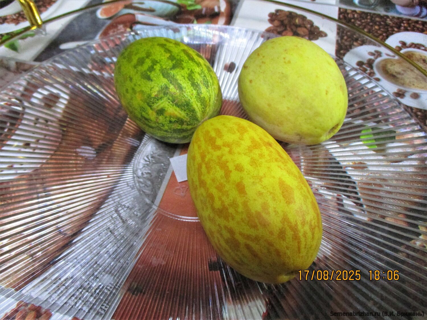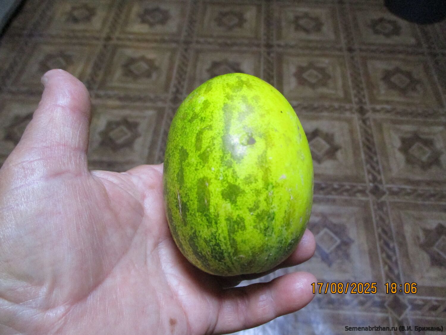 Очень старый коллекционный Американский сорт ранних дынек, известный с 18-го века. Сверхранний сорт выделяется среди других сортов миниатюрными размерами и оригинальным окрасом. Срок созревания: 65-75 дней. Растение с длиной плетей 80-200см, со множеством небольших овальных, иногда круглых длиной до 10 см. и 5-7см в диаметре, оранжевого цвета, с желтыми полосками красивых и ароматных плодов. Масса дыньки в среднем составляет 150–250 г, и до 400-600 г., количество плодов достигает 20–30 штук. Мякоть имеет белый цвет, она плотная, но в то же время очень сочная. Обладает отменным вкусом с нотками сочного ананаса. Сорт обладает потрясающим сладко-свежим фруктовым ароматом, который наполняет собой пространство вокруг растения в радиусе нескольких метров. Плодоносит этот сорт в открытом грунте средней полосы России с середины июля, в теплицах – со второй половины июня, продолжительно, в течение 1,5-2 месяцев. Зрелые плоды приобретают очень выразительную своеобразную окраску с желто-оранжевыми полосками (недозрелые – черно-зелёные) и приятную бархатистую поверхность, собранные в технической спелости имеют способность дозариваться. Светло-оранжевая кожица с тёмно-коричневыми полосками выглядит очень необычно и декоративно. Подходит для относительно северных регионов. Вкус плодов тонкий, сладковатый, прекрасно оттеняет и подчеркивает другие вкусовые составляющие блюд. Употребляют плоды в свежем виде, как ингредиент фруктовых салатов, различных холодных закусок, дыня хорошо сочетается со множеством продуктов, в том числе мясом птицы, свининой и сырами. Великолепный завораживающий аромат свежесобранных плодов сохраняется в течение 10-12 дней, а их декоративные качества, которые широко используются в современных фруктово-цветочных композициях, на протяжении нескольких месяцев.Эти дыньки считаются лечебными. Залог получения высокого урожая дынь не только в использовании ранних кустовых и короткоплетистых сортов, но и правильной формировке растений. Это самый важный агротехнический прием. Необходимо знать то, что плоды дыня завязывает на стеблях третьего порядка. Для более раннего их появления необходима правильная прищипка плети. Освоить эту технику совсем несложно. Растение, которое выпустило пятый настоящий листик, прищипывают над третьим листом. Из пазух оставшихся листьев отрастают три ветки второго порядка. Нижнюю ветку выщипывают, а оставшиеся две ветки второго порядка прищипывают над 4-5-м листом. Из пазух оставшихся листьев веток второго порядка отрастают ветки третьего порядка, на которых и появляются женские цветки. После того как завязь достигнет 3-4 см, на растении оставляют только 5-6 веток из тех, на которых завязались плоды. На каждой ветке должна быть только одна завязь. А еще через две недели точку роста плодовых веток прищипывают. Образовавшиеся ветки четвертого порядка прищипывают над 3-4-м листом. Таким образом в самые минимальные сроки искусственно создаются оптимальные условия для плодоношения дыни. Зрелость плодов дыни определяется при появлении типичной сорту окраски фона и рисунка. У большинства ранних и среднеспелых сортов дыньки легко отделяются от плодоножки, появляется свойственный сорту аромат. Вершинная часть плода (у плодоножки) становится мягкой. В пакете 5 шт. семян.