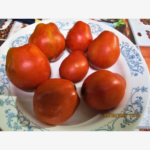 Для любителей сладких, не крупных томатов - коллекционный сорт народной селекции из г.Минусинска! Очень интересный, красивый в декоративном плане сорт. Официальной государственной регистрации в реестре селекционных достижений РФ сорт не имеет. Его история передается устно и через обмен семенами между овощеводами, что характерно для многих популярных «народных» томатов. Отсутствие патента и открытый статус сделали его достоянием многих садоводов. Факт длительного сохранения и распространения сорта исключительно силами огородников косвенно подтверждает его надежность, устойчивость и высокие потребительские качества, проверенные в реальных, а не лабораторных условиях. Формирование сорта проходило в зоне резко континентального климата Южной Сибири, для которого характерны короткое лето, значительные суточные перепады температур, риск возвратных заморозков и ранних осенних холодов. Такая естественная «селекция» на выживаемость заложила в Минусинскую грушу генетическую предрасположенность к стрессоустойчивости. Растение адаптировано к тому, чтобы максимально эффективно использовать ограниченный теплый период для формирования и отдачи урожая. Высокорослый (в теплице до 2-х метров), достаточно ранний, с красивыми ниспадающими кистями, на которых созревают одновременно 10-12 очаровательных "лампочек". Плоды огненно-красного цвета снаружи и внутри, грушевидной формы, практически все одного размера (в пределах 150г). Как и у многих сортов народной селекции, форма может варьироваться на одном растении: встречаются как идеально ровные экземпляры, так и плоды с легкой ребристостью у плодоножки. Мякоть средней плотности, зернистая, с малым количеством семян. Вкус сладкий, не пресный, содержание сахаров и кислот сбалансированное, с тонким ароматом персика в послевкусии. Сорт неприхотливый, выдержал и перепады температур, и жару, не болел "вершинкой" (и не собирался), плоды не подвержены растрескиванию, все гладкие, поблёскивают и хорошо лежат на дозаривании. Плодоношение растянутое: после сбора первых, самых крупных томатов, куст продолжает формировать и наливать новые кисти до конца сезона. Универсальное назначение плодов подразумевает их отличную адаптацию как для свежего потребления, благодаря насыщенному сладкому вкусу, так и для всех видов переработки. Крупный размер и мясистая структура делают их идеальными для приготовления густых соусов, лечо и соков. В консервации смотрятся отлично - не текут и не разваливаются.Отсутствие генетической устойчивости к распространенным патогенам — характерная черта многих сортов народной селекции, включая этот. Его восприимчивость к фитофторозу, кладоспориозу (бурой пятнистости) и другим грибковым инфекциям оценивается как средняя. Это означает, что в неблагоприятных условиях растение потребует повышенного внимания, а успех выращивания напрямую зависит от грамотной и своевременной профилактики. В пакете 20 шт. семян.