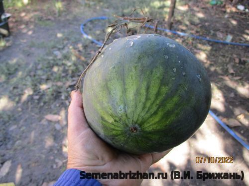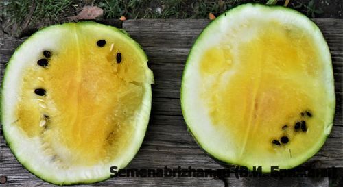 Старинный коллекционный сорт из штата Миссури, США. Высокоурожайный раннеспелый (период от полных всходов до первого сбора 67-85 дней) сорт. Растение с мощным ростом, длинноплетистое. Лист крупный, зеленый, с опушением, узкодольный, среднерассеченный. Плод овальной формы, средняя масса товарного плода 4-5 кг. Кора чёрно-зеленая с более темной сеткой. Мякоть интенсивно-жёлто-оранжевая, зернистая, нежная, сладкая. Назначение – рекомендуется для употребления «с грядки», приготовления сочных цукатов и лечебного арбузного меда, для засолки и маринования. Этот арбуз ценится садоводами за необычный светлый вид коры и классический «сахарный» вкус мякоти, напоминающий десерт. Урожайный арбуз наверняка захочет посадить у себя на участке огородник, предпочитающий культуры с оригинальными плодами. Сорт славится по причине потрясающего аромата мякоти, в котором отчётливо слышны нотки манго. Великолепный сахарный сорт арбуза, отличающийся таким ценным свойством, как лежкоспособность в течении 2-2,5 месяцев после съема плода.Засухоустойчив, слабо восприимчив к фузариозу и антракнозу. Предназначен для выращивания в пленочных теплицах и в открытом грунте.Великолепный сахарный сорт арбуза, отличающийся таким ценным свойством, как лежкоспособность в течении 2-2,5 месяцев после съема плода. Вкусовые качества отличные. Засухоустойчив, слабо восприимчив к фузариозу и антракнозу. Предназначен для выращивания в пленочных теплицах и в открытом грунте.В пакете 5 шт. семян.