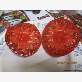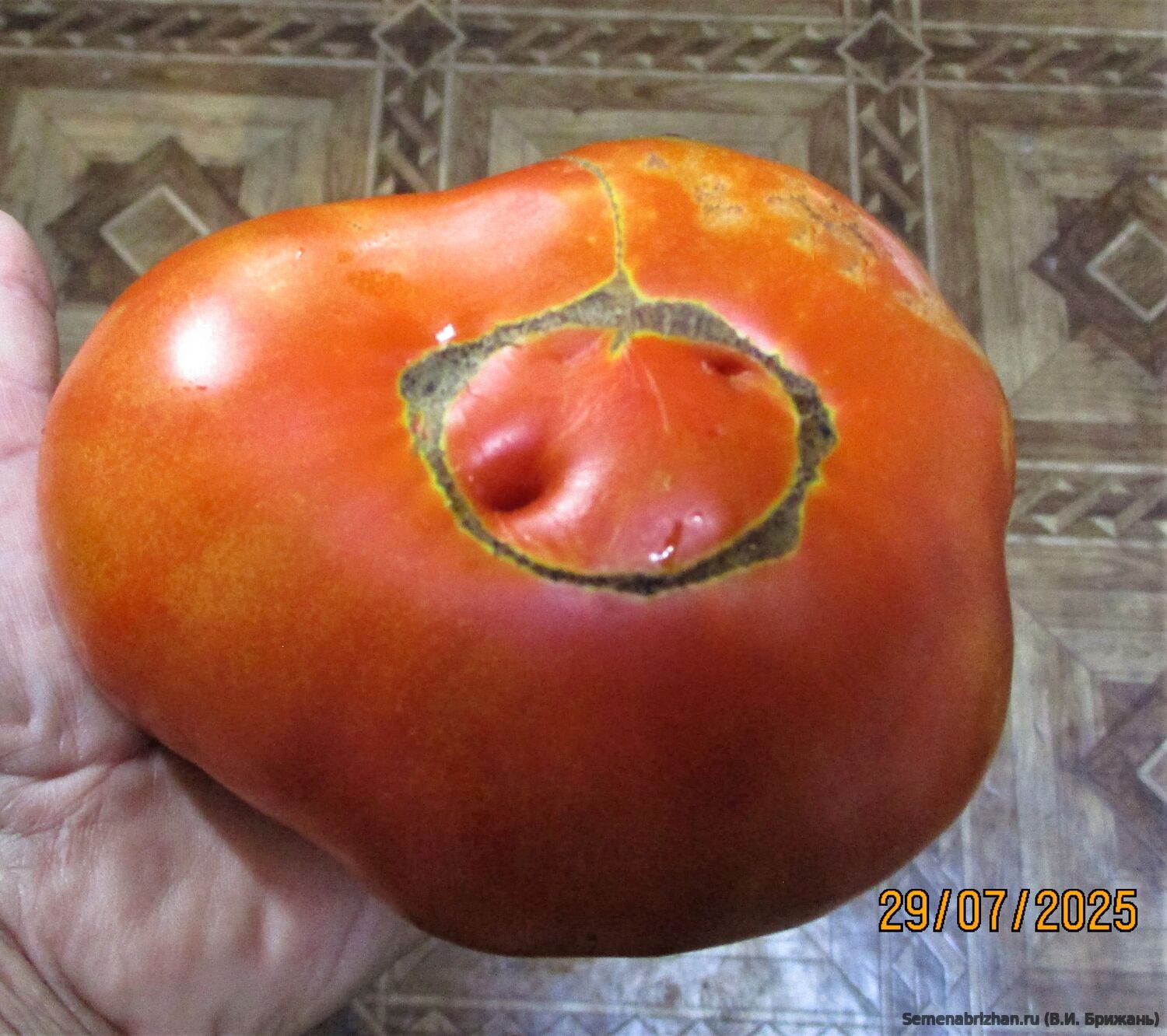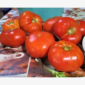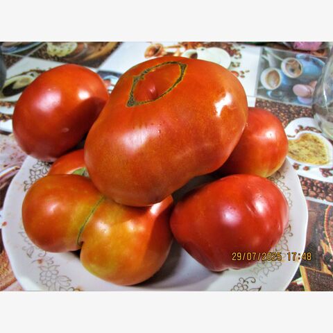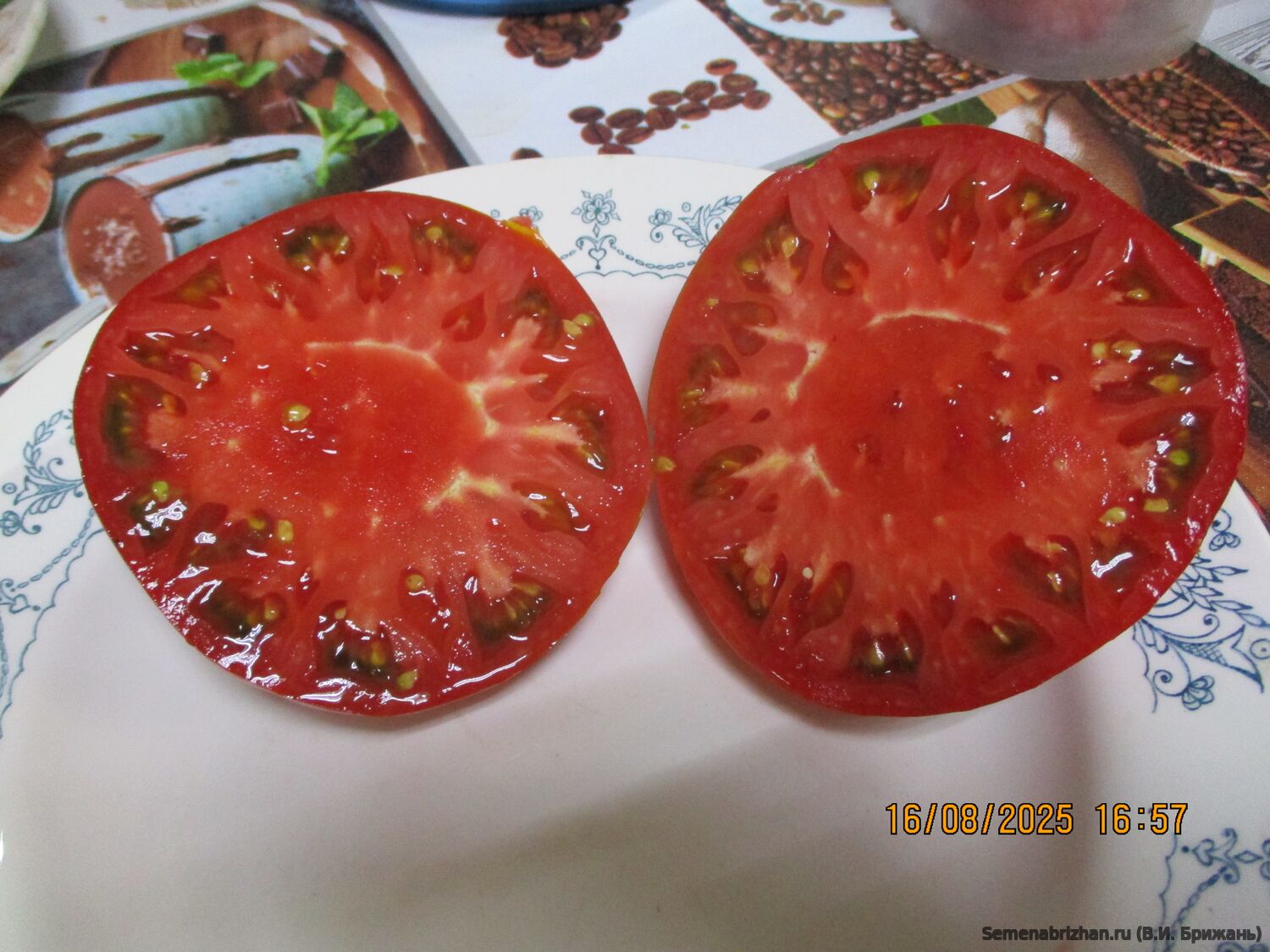 Этот сорт – результат целенаправленной работы украинских селекционеров, которая пришлась на начало 2000-х годов. Его создание было продиктовано четкими запросами овощеводов-любителей, стремившихся получить неприхотливый, крупноплодный томат с насыщенным вкусом, идеально подходящий для приготовления соков, паст и кетчупов. Ключевой задачей было совместить высокие вкусовые и технологические качества плодов с адаптивностью к разным условиям выращивания. Селекционеры успешно решили эту задачу, получив сорт, который демонстрирует стабильную урожайность как под пленочными укрытиями, так и на открытых грядках в регионах с теплым и умеренным климатом. Важной отличительной чертой томата Инна является то, что это именно сорт, а не гибрид F1. Это означает, что растения, выращенные из собственноручно собранных семян, сохранят все ключевые родительские признаки: тип роста, форму, цвет и вкус плодов. Данная особенность значительно повысила его привлекательность для огородников, предпочитающих самостоятельную заготовку посевного материала и ценящих стабильность сортовых линий. Сочетание универсальности, отличных вкусовых качеств и надежности обеспечило сорту долгосрочную популярность, превратив его в проверенный временем вариант для личных подсобных хозяйств. Среднеспелый срок созревания указывает на то, что от появления полных всходов до сбора первых зрелых плодов проходит значительный период, обычно в пределах 110-120 дней. Это определяет календарь работ: рассаду высевают достаточно рано, а массовое плодоношение наступает во второй половине лета. Заявленная пластичность сорта, то есть его способность расти как в защищенном, так и в открытом грунте, имеет важные региональные нюансы. В условиях средней полосы, Северо-Запада, Урала и Сибири гарантированно раскрыть потенциал сорта можно только в теплице. Здесь растение защищено от перепадов температур и получает достаточно тепла для полноценного созревания крупных плодов. В южных регионах с длинным и теплым летом томат отлично показывает себя в открытом грунте. В таких условиях высота куста, как правило, оказывается ближе к нижней границе заявленного диапазона. и помидоры приобретают равномерный, насыщенный красный цвет. Зеленого пятна у плодоножки, как правило, не остается, что свидетельствует о полноценном созревании. Кожица у плодов прочная, но при этом не ощущается грубой при употреблении. Эта особенность, в сочетании с плотной мякотью, является надежной защитой от растрескивания, что особенно ценно для крупноплодных томатов. Внутренняя структура соответствует типу «биф-томат» (бифштексный). Мякоть очень мясистая, сахаристая на изломе, с малым количеством семян и немногочисленными семенными камерами. Такая мякоть не водянистая, а именно плотная и насыщенная. Масса и вкусовые качества Средняя масса плода, согласно характеристикам сорта, составляет 250-350 граммов. Однако потенциал сорта позволяет получать и более впечатляющие результаты. На нижних кистях, особенно при нормировании количества завязей (оставлении 3-4 цветков из 5-6) и обеспечении стабильного питания и полива, томаты могут достигать 500-700 грамов. Вкус гармоничный, классический томатный, с хорошо ощутимой сладостью в послевкусии. Высокое содержание сухих веществ и сахаров в плотной мякоти напрямую влияет на