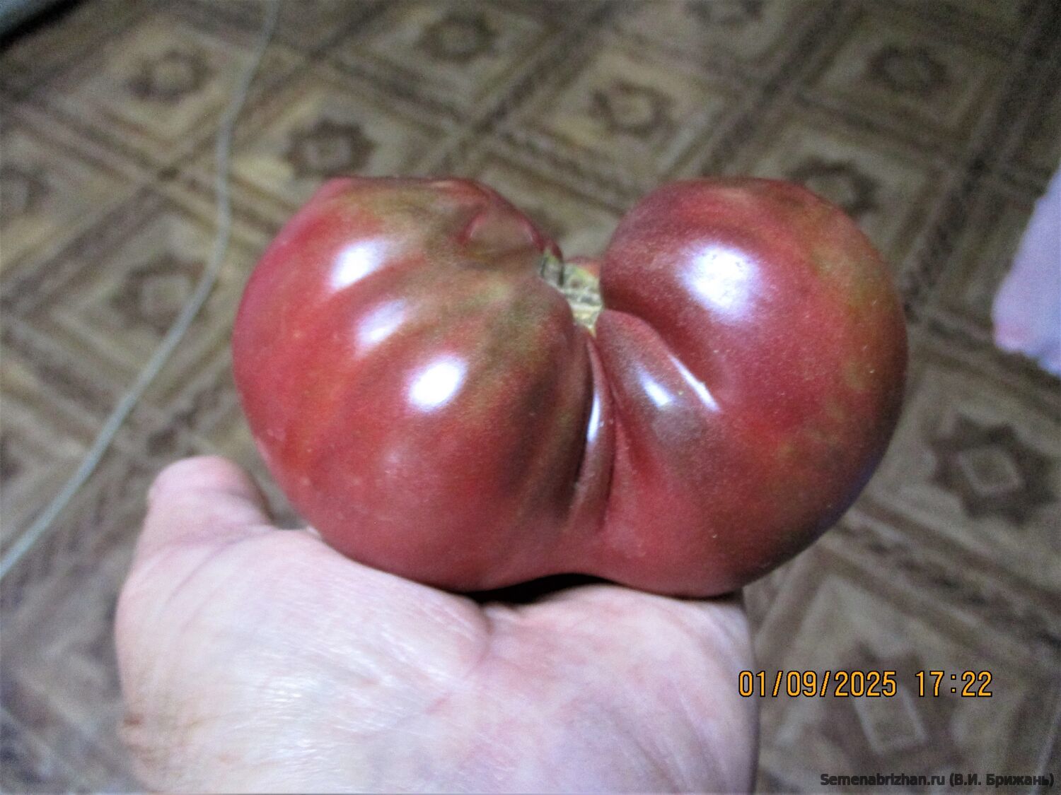 Томат Dwarf Boronia, Happy или Счастливый – среднеспелый, урожайный сорт из проекта «Гном» (Dwarf Tomato Project), (Патрина Нуске Смолл, Австралия) - это один из самых интересных представителей коллекционной томатной семьи. Этот сорт был создан австралийскими авторами при скрещивании Нового большого карлика (New Big Dwarf) и Поля Робсона (Paul Robeson). Созревание плодов происходит через 105-115 дней после появления всходов. Он относится к категории детерминантных томатов, отличающийся компактными штамбовыми кустами. Куст этого сорта достигает высоты от 60 до 100 сантиметров. Он характеризуется крепким и прямостоячим стеблем, морщинистыми и широкими листьями. Форма плода плоско-округлая, часто с легкой ребристостью. Их цвет зрелости – пурпурно-розовый с коричневым оттенком и зелеными плечиками. Масса каждого плода составляет от 100 до 300 граммов. Количество плодов в одной кисти обычно составляет от 3 до 5 штук.Обладает сладковатым вкусом, с легкой кислинкой и с выраженным пряным ароматом, который приятно дополняется сочной и маслянистой мякотью. Цвет мякоти пурпурный с зеленоватыми семенными камерами. Кожица плода гладкая и тонкая. Формирование: Не требует обязательного пасынкования, но рекомендуется частичное формирование (обычно в 2-3 стебля) для более крупных плодов. Устойчивость: Высокая завязываемость даже в прохладу или легком затенении, устойчив к болезням. Применение: Универсален — салатный сорт, подходит для соков и соусов. Также томаты подходят для засаливания, в домашней переработке, хороши для консервации, пасты, вяления. Созревание в кистях дружное. Высокая урожайность, плодоношение длительное, до заморозков. Хорошая завязываемость в стрессовых условиях. Обильный урожай. Сорт устойчив к основным томатным заболеваниям. Урожайность стабильная и составляет 1.0–5.6 кг/кв. метр. В пакете 5 шт. семян.