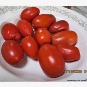 Томат «Сызранские Красные Пальчики»- высокоурожайный коллекционный супер-сорт народной селекции! Красивые пышные кусты с насыщенно-зелёной листвой могут обходиться без формировки: вырастают около метра высотой и заполоняют вокруг себя всё пространство; 2-3 основных ствола подвязываем, остальные свободно вьются вокруг. Если формировать в 2 ствола, кусты в теплице дотягивают до 1,5-1,7 метра. Ярко-красные удлиненные плоды-конфетки крепко держатся за ветки, не осыпаются даже при перезревании. В кистях до 30 плодов длиной 3,5-4см! Плоды собраны в крупные красивые кисти по 6–8 (иногда до 10-15) штук. Мякоть умеренно плотная, мясистая, сочная, с небольшим количеством семенных камер. Мясистые, не растрескиваются, на вкус супер-сладкие и безумно ароматные! Для тех у кого есть маленькие детки, этот сорт — просто находка! СРОК СОЗРЕВАНИЯ: раннеспелый. ТИП И ВЫСОТА КУСТА: полудетерминантный, в зависимости от формировки от 100 до 170см. ФОРМИРОВКА: рекомендуем формировать в 2-4 ствола с пасынкованием и подвязкой. МАССА ПЛОДОВ: 30-50 грамм. ФОРМА ПЛОДОВ: пухлые сливки. ЦВЕТ ПЛОДОВ: ярко-красный. ВКУС ТОМАТОВ: очень сладкий, мякоть плотная с малым количеством сока и семян. ИСПОЛЬЗОВАНИЕ: «Сызранские Красные Пальчики» просто просятся в банку! Хороши для цельноплодного консервирования и уплотнения баночной консервации. Отличный сорт для заморозки и вяления. Помидоры столовые, широко используются в кулинарии, вкусны в свежем виде. Из спелых плодов готовят соусы, пюре, соки. Урожайность хорошая, с куста можно получить 5-6 кг томатов. Плоды отлично хранятся, возможна транспортировка.В пакете 5 шт. семян.
