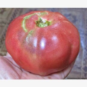 Томат Минусинские Лапти (Лапоть Минусинский) — коллекционная семейная реликвия народной селекции из Сибири, г. Минусинска Красноярского края. Отличается высокой урожайностью, отличной холодостойкостью и крупными плодами, массой 250–500 г (иногда до 800-1000 г), плоско-округлой или овальной формы, красного-розово-малинового цвета. Плоды мясистые, сахаристые, очень вкусные, идеальны для салатов и соков. Высокорослый, кистевой, в кистях 3-4 плода. Средне-ранний, начинает плодоносить через 70-80 дней после высадки рассады. Основные характеристики сорта: Куст: Индетерминантный (неограниченного роста), крепкий, достигает 1,7–2 м в теплице, мощный. Формирование: Рекомендуется выращивать в 1–2 стебля с обязательной подвязкой и пасынкованием. Плоды: Форма чаще плоско-округлая или плоско-округлая с сердцевидностью. Цвет — ярко-розово- красно-малиновый, иногда с сиренево- зелёными плечиками. Вкус и мякоть: Мякоть арбузная, плотная, сахаристая, на разломе зернистая. Вкус классический насыщенный сладкий томатный вкус, легкой кислинкой, малосемянные.Урожайность: Высокая, при хорошем уходе — 8-10 кг с куста. Особенности: Сорт устойчив к низким температурам и стрессам, хорошо плодоносит в условиях недостатка солнца. Применение: Салатный сорт, подходит для переработки на соки, соусы, пасты. Благодаря высокому содержанию сухих веществ и небольшому количеству свободной жидкости мякоть перерабатывается в густые, концентрированные продукты. Из него получается превосходная паста, кетчуп или сок, не требующий долгого уваривания. Плоды среднего размера из первой кисти хорошо подходят для консервации в нарезку или приготовления лечо. Сорт ценится за свой вкус и крупные размеры, однако требует плодородной почвы и правильного формирования для получения максимального урожая. Требователен к питанию и солнечному месту.В пакете 20 шт. семян.