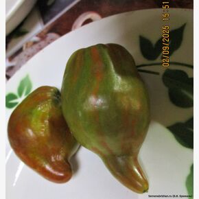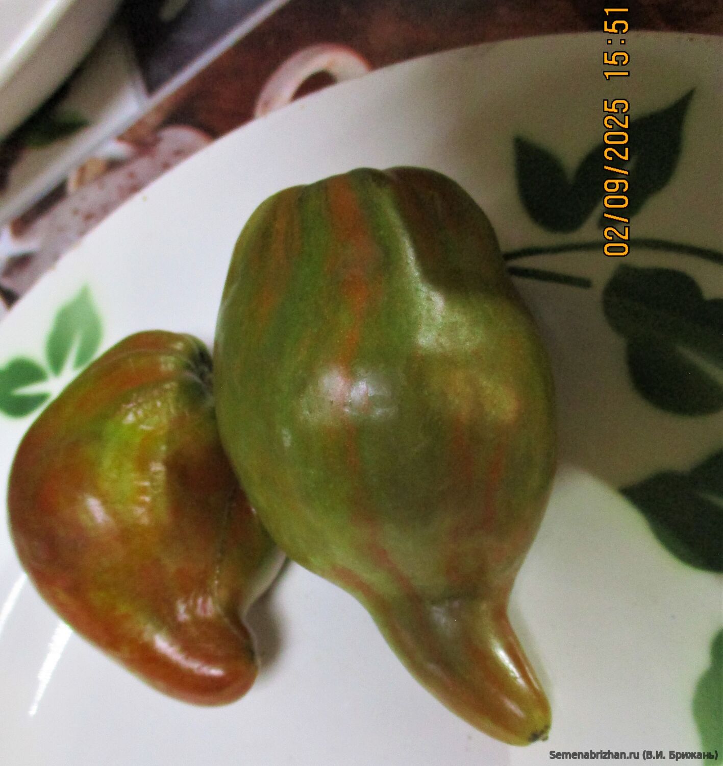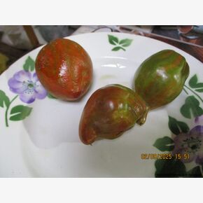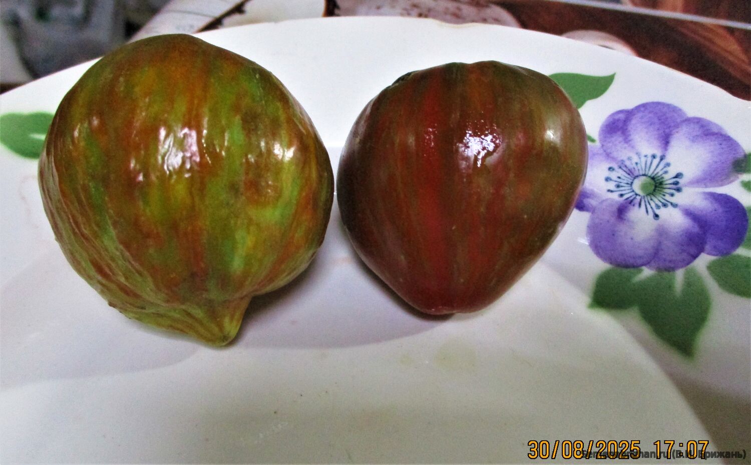 Томат "Rebel Starfighter Blaine's Moonlight" (Восставший Звездный Истребитель: Лунный свет Блэйна) — среднеспелый индетерминантный сорт (до 1,8–2 м) от Расса Кроу,США. Сорт получен в результате скрещивания сортов Lunar Mile и VT16 (Rebel Starfighter) и назван в честь Блейна Хортона, который помогал в его стабилизации. Выделяющийся экзотическим внешним видом и отличным сладким вкусом. Плоды — бордово-вишневые сердцевидные сливовидные с зелеными полосами и антоцианом, массой 150-300 г. Основные характеристики сорта: Сроки созревания: Среднеспелый (110–120 дней). Куст: Высокорослый (индетерминантный), требует обязательной подвязки и пасынкования, лучше вести в 1-2 стебля. Плоды: Овально-сердцевидные, иногда с заостренным носом, красно-бордовые с металлическими зелеными полосами и темными плечиками (антоциан). Вкус и мякоть: Мякоть вишнево-гранатовая, плотная, мясистая, с малым количеством семян. Вкус насыщенный, необыкновенно приятный, сбалансированный, ни тебе лишней кислоты, ни лишней сладости — всё в меру; аромат глубокий, насыщенный с длительным послевкусием, сладкий, с фруктовыми нотками. Урожайность: Высокая, плодоносит до заморозков. Использование: Идеален для свежего потребления, салатов, нарезки, а также вяления. Из спелых плодов готовят густые соусы, пюре, соки, а также благодаря плотности — для консервирования. Устойчивость: Достаточно устойчив к заболеваниям, хорошо переносит транспортировку. В пакете 5 шт. семян.