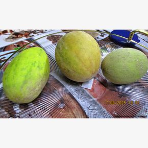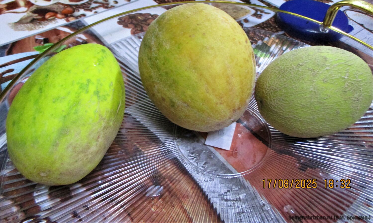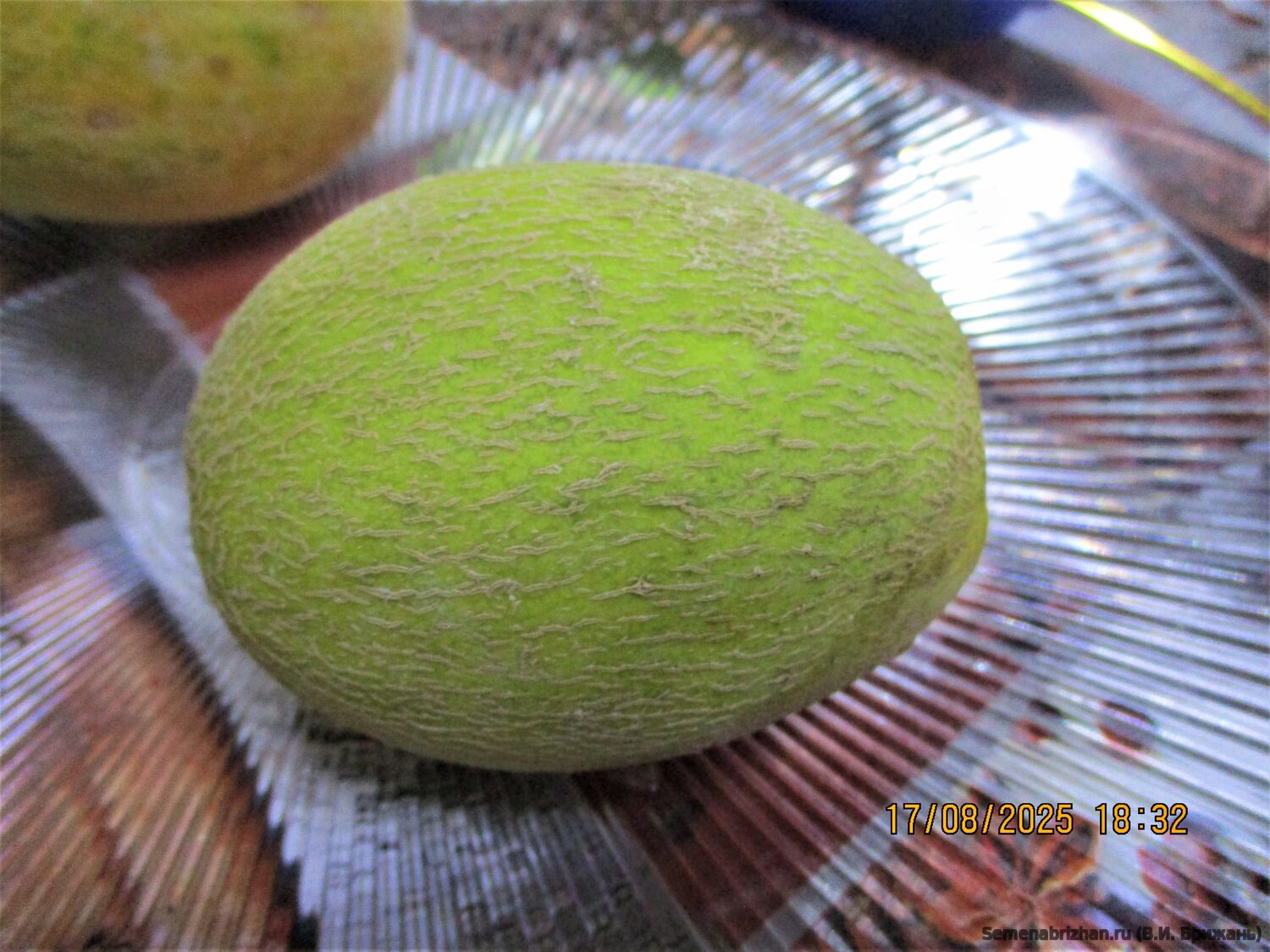 • Коллекционный фамильный сорт селекции Фунтикова Олега Викторовича из г.Смоленска. Среднеспелый сорт, от посадки семян до полного созревания проходит 60–72 дня. Растение формирует длинный стелющийся стебель, достигающий до 2 метров в длину. За один сезон с одного куста можно получить урожай из 4–5 дынь. Плоды овальные, слегка удлинённой формы. Их поверхность ровная, без ребристости. Кожура тонкая, ярко-изумрудного цвета, с небольшим зелёным пигментом вдоль плода в стадии технической спелости. Она лишена рисунка, но имеет бежевую густую сетку, при созревание становятся жёлтыми, массой до  700-900 гр., с кремовой сахаристой мякотью. Мякоть нежная, но обладает хрустящей текстурой, имеет светло-кремовый оттенок. Идеальна в свежем виде, для салатов и кулинарных шедевров: из зрелых плодов получается душистое варенье, нежная пастила и густое повидло - настоящие десерты, которые обожают и дети, и взрослые. Сорт высокоурожайный, устойчивый к болезням, засухе и перепадам температур. Семена можно сразу сеять в открытый грунт в конце мая или первых числах июня. На рассаду нужно выращивать в теплице или в парнике. Проросшие семена высаживают в ёмкости с заранее подготовленным грунтом из смеси торфа, песка и дерновой земли. В каждой ёмкости должно быть два или три семени. Далее их посыпают слоем песка и поливают тёплой водой. Когда появляются всходы, температуру в теплице или парнике можно уменьшить на несколько градусов, что поможет избежать вытягивания растений. Поливать рассаду нужно аккуратно - не слишком часто и не слишком обильно. Прищипывать растения нужно в фазе трех настоящих листьев. Рассада готова к посадке в открытый грунт в возрасте 25 дней. Высаживают её в предварительно подготовленные лунки, расстояние между ними должно составлять, в среднем, около 70 см. В пакете 5 шт. семян.