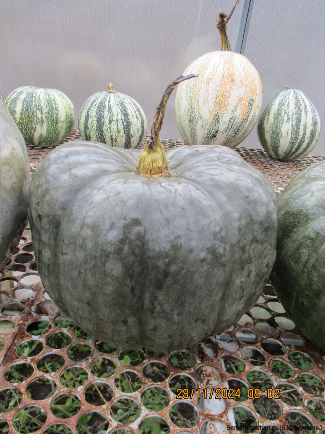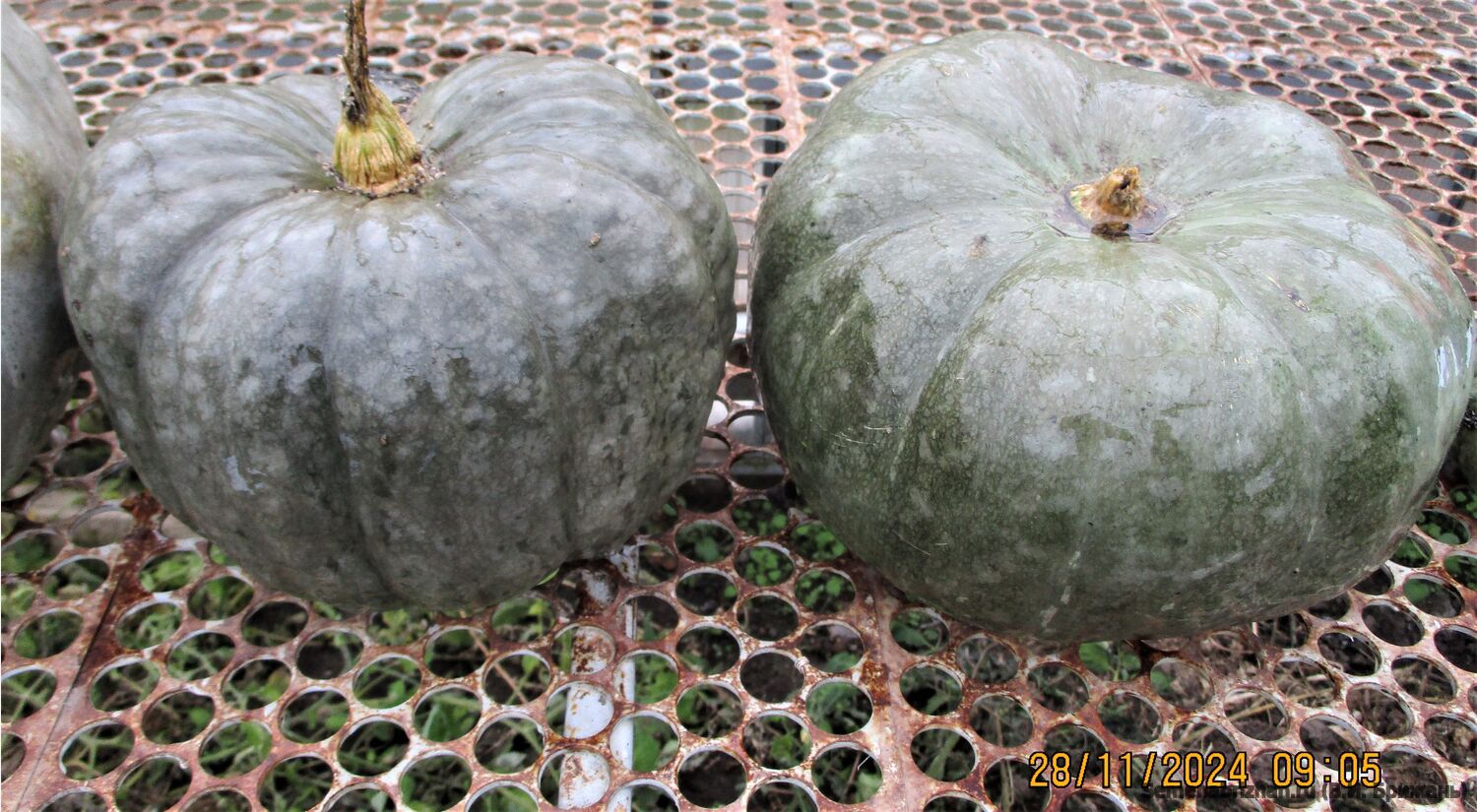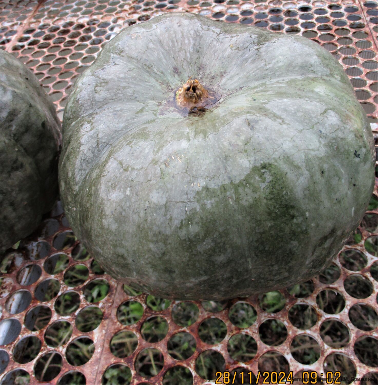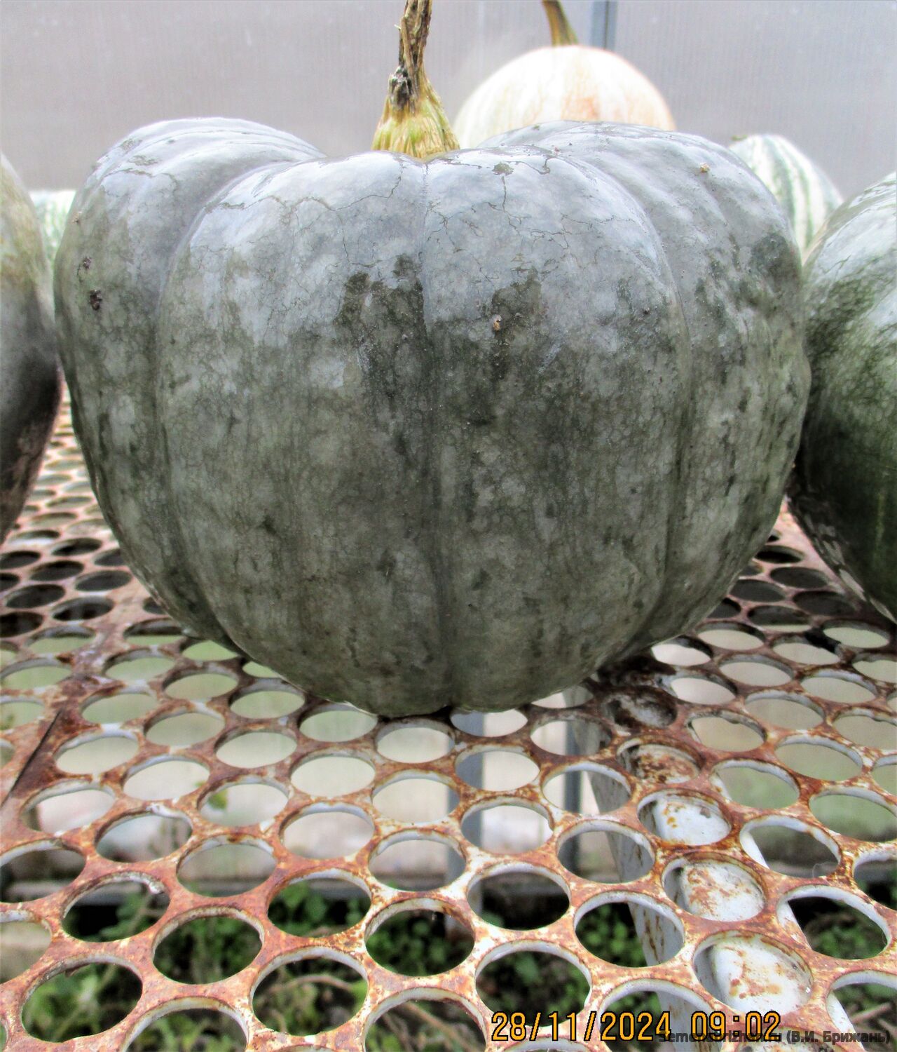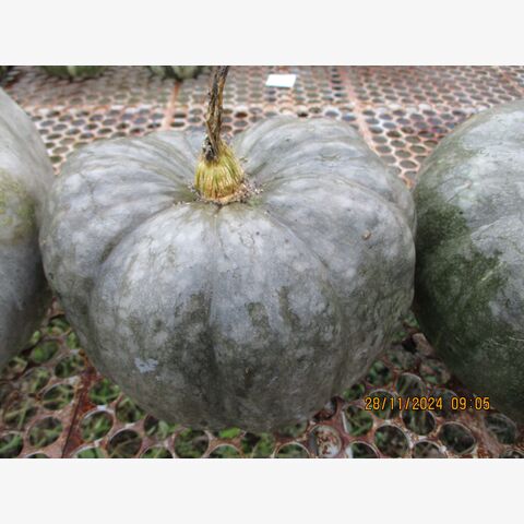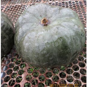 • Старинный, коллекционный сорт из Японии. Среднеспелый (от всходов до созревания 110-120 дней) сорт с порционными плодами. Растение плетистое. Главная плеть длинная. Листовая пластинка маленькая, зелёная, нерассеченная. Плоды плоско-округлые,  гладкие, сегментированные, желобки редкие, мелкие, слегка ребристые, массой 2,5-3,5 кг. Кожура имеет необычный серо-голубой или сине-стальной оттенок, тонкая, но плотная. Мякоть ярко-оранжевая, очень плотная, сухая и крахмалистая (по текстуре напоминает каштан или хороший картофель). Вкус сладкий, с выраженным ореховым послевкусием. Мякоть нежная, с ореховым ароматом, один из лучших сортов для жарки и приготовления супов. Семенное гнездо среднего размера, плаценты постенные. Семена широкоэллиптические, среднего размера, панцирные, оранжево-кремовые. Плоды сохраняют товарные качества до 100 дней после съёма. Средняя урожайность с одного растения 18-20 кг., срок хранения 3-4 месяца в хорошо проветриваемом, прохладном помещении. Растения очень мощные, будьте готовы к захвату вашего огорода.В пакете 5 шт. семян.